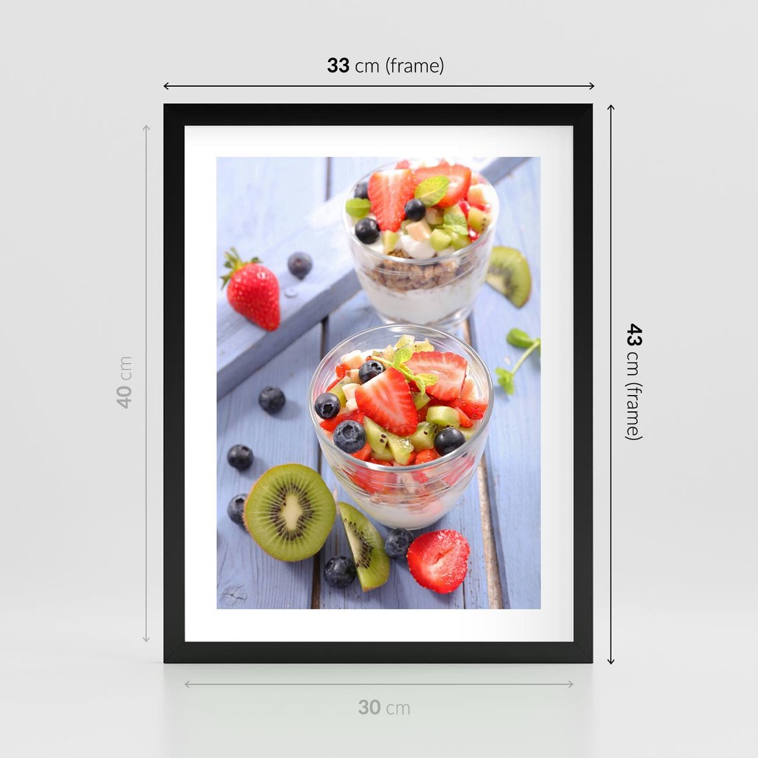 Plakat w ramie 30x40 - Świeżość i Zdrowie - sałatka, owoce - rama czarna