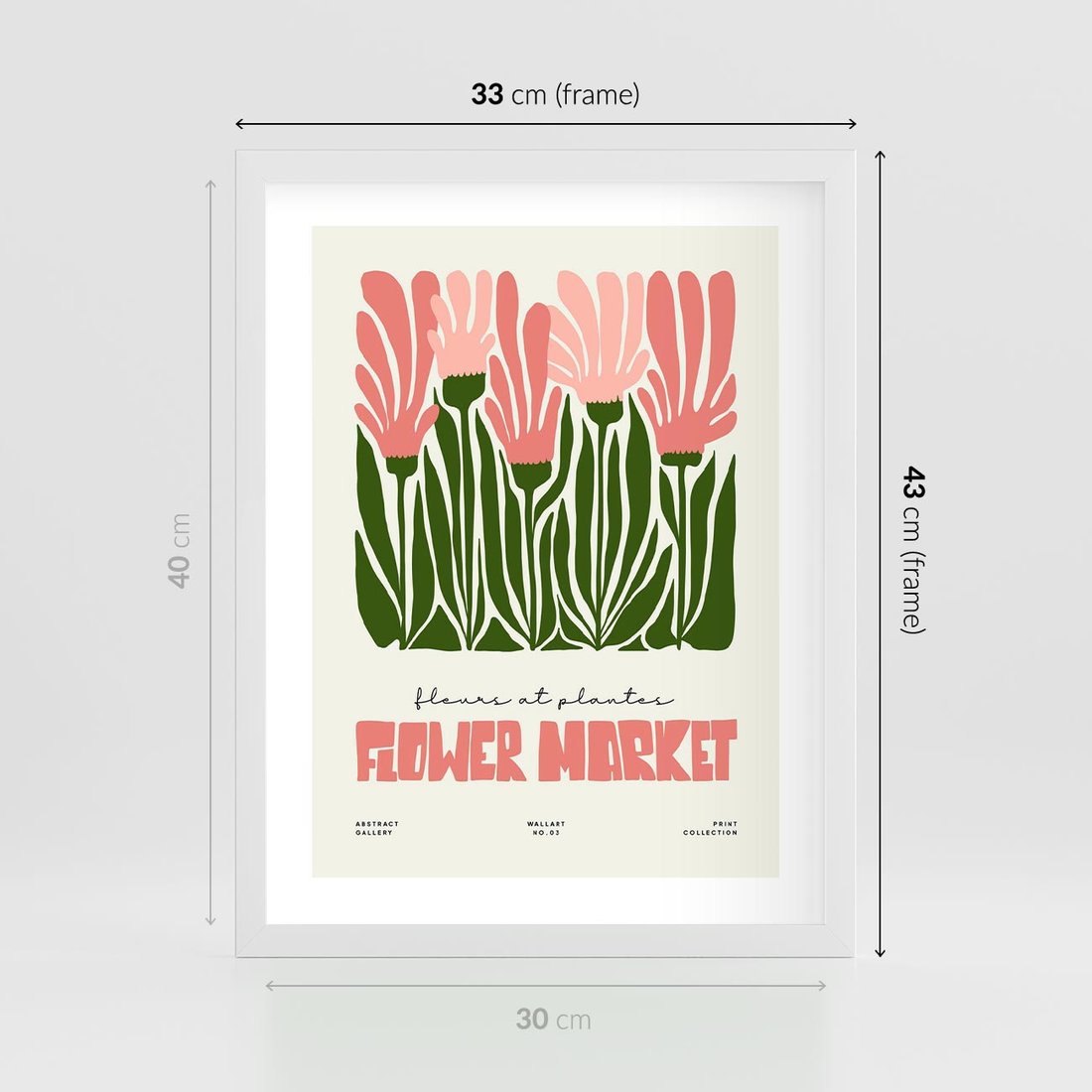 Plakat w ramie 30x40 - Symfonia Kolorowych Kształtów - nowoczesna grafika, kwiatowa kompozycja - rama biała