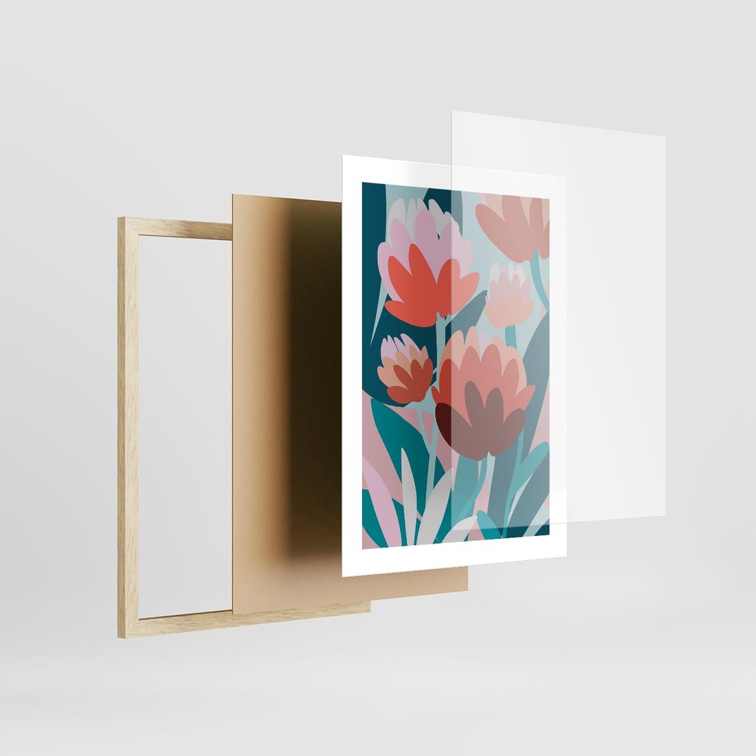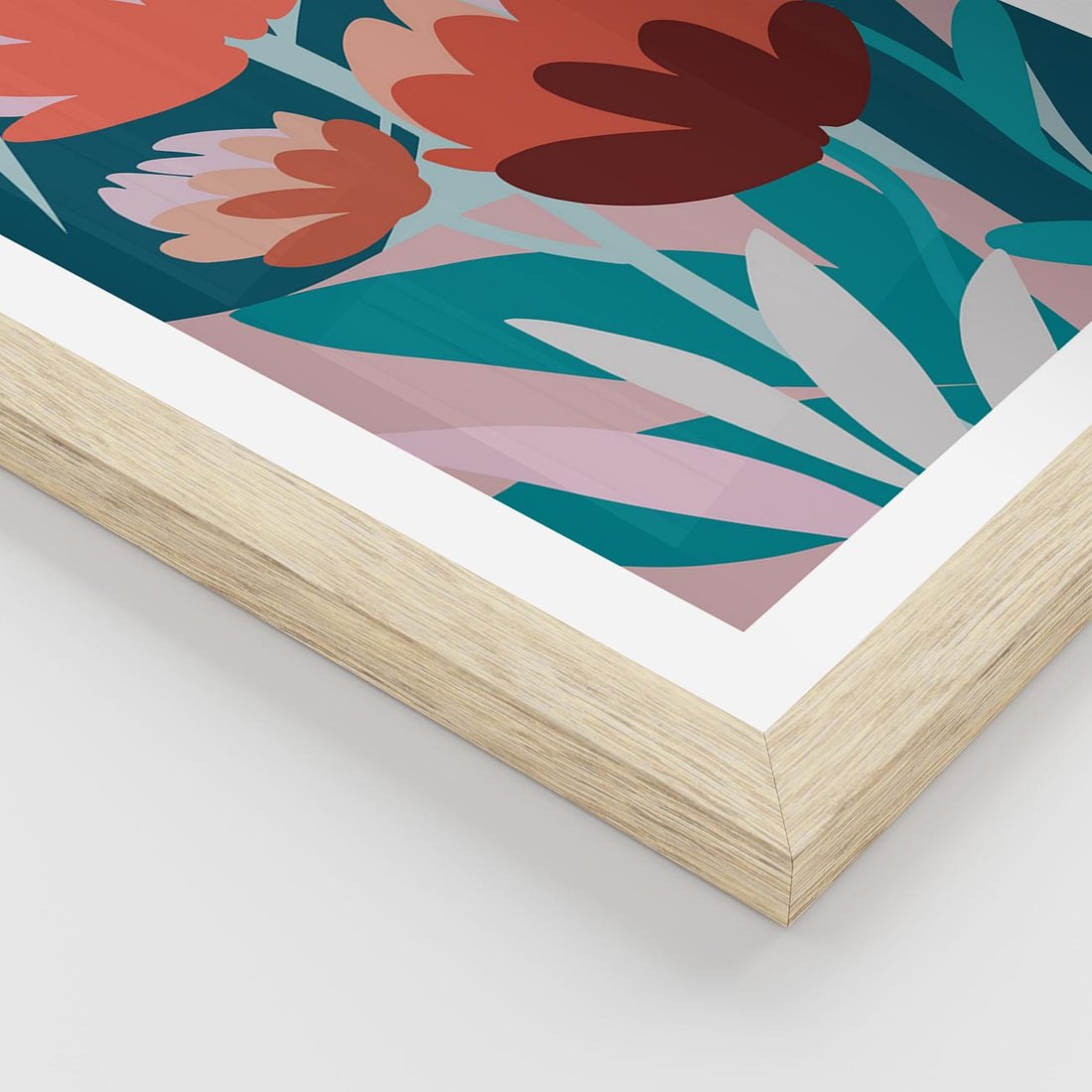 Plakat w ramie 30x40 - Symfonia Kwiatów - abstrakcyjna kompozycja kwiatowych form, kolor zgaszone - rama drewno