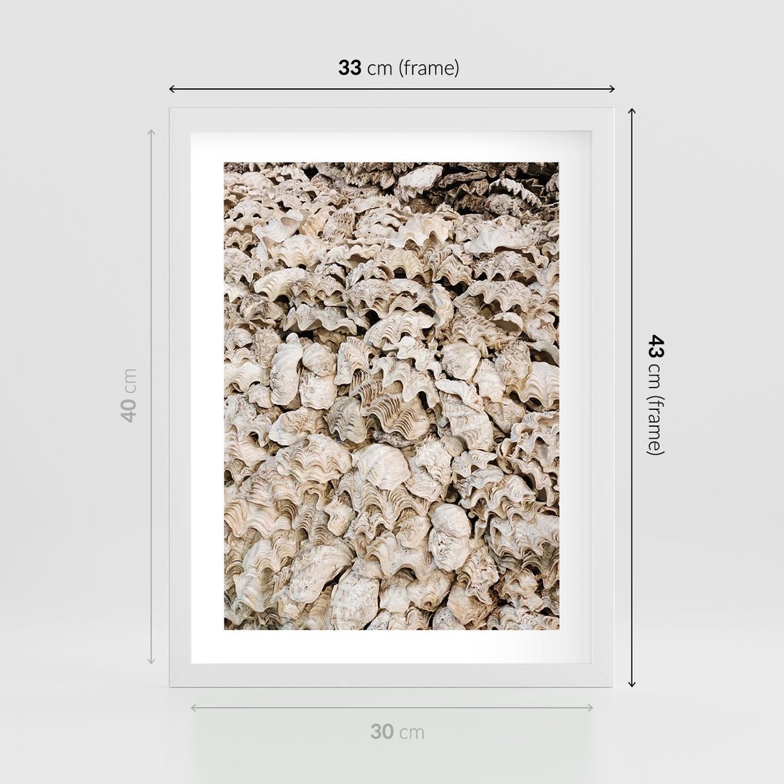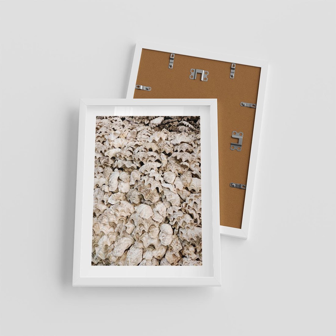 Plakat w ramie 30x40 - Symfonia Natury - kompozycja z białych muszli - rama biała