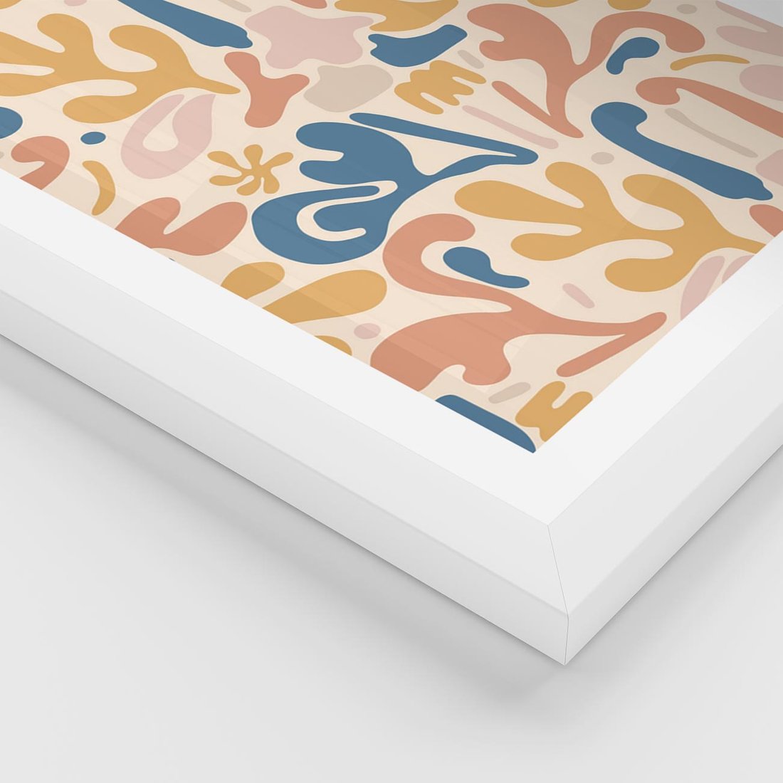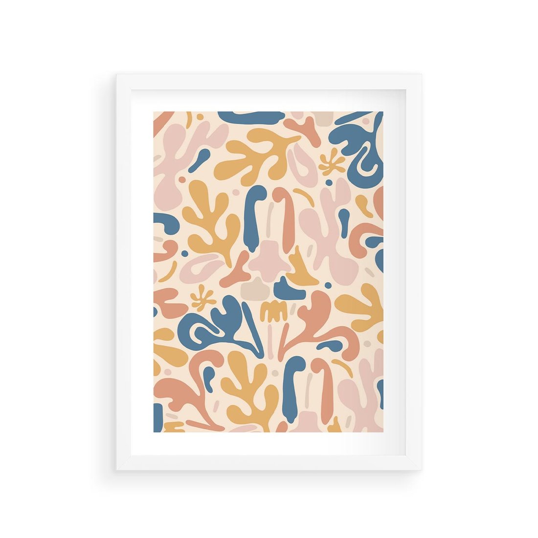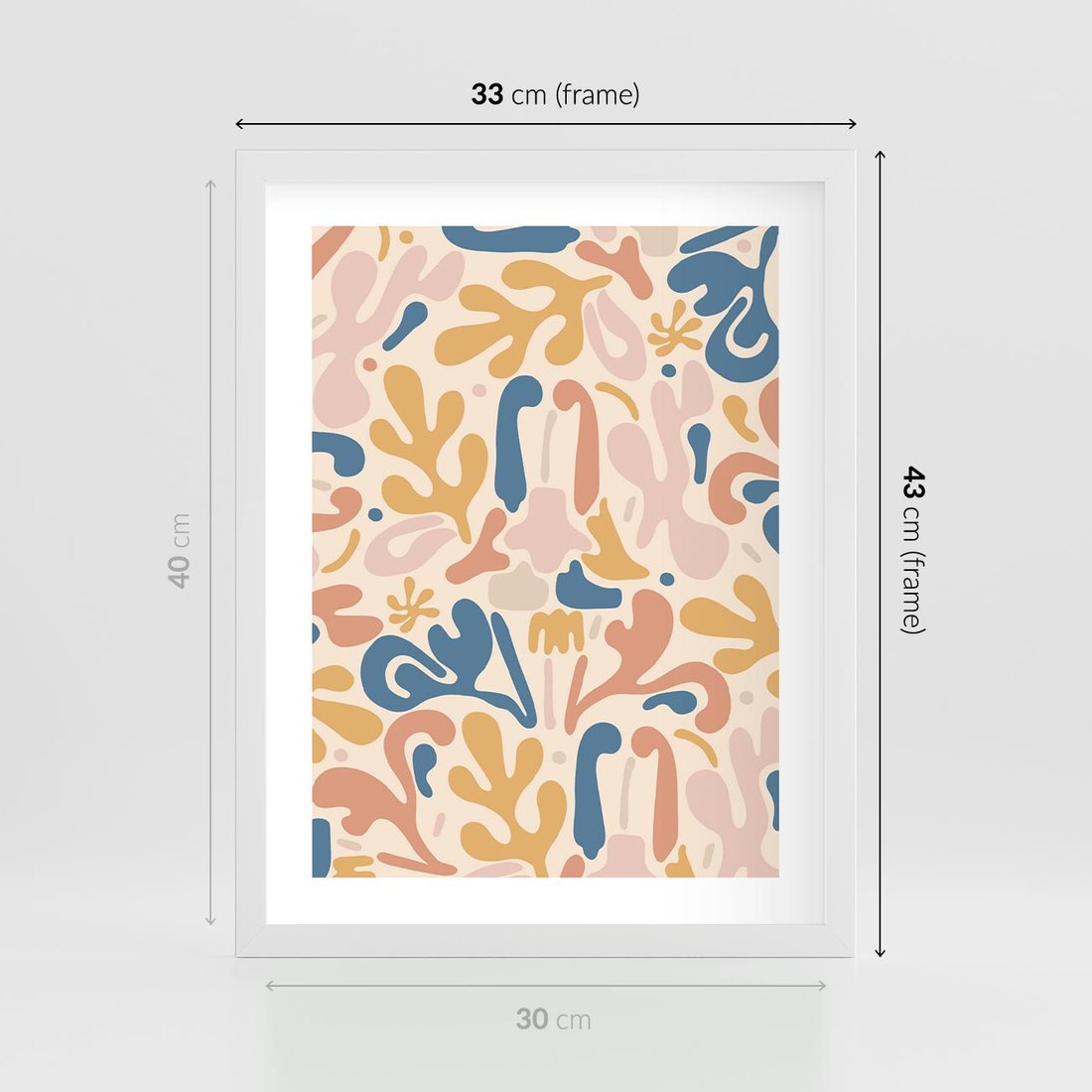 Plakat w ramie 30x40 - Symfonia Radosnych Barw - abstrakcyjne pastelowe formy, nowoczesna grafika w stylu boho - rama biała