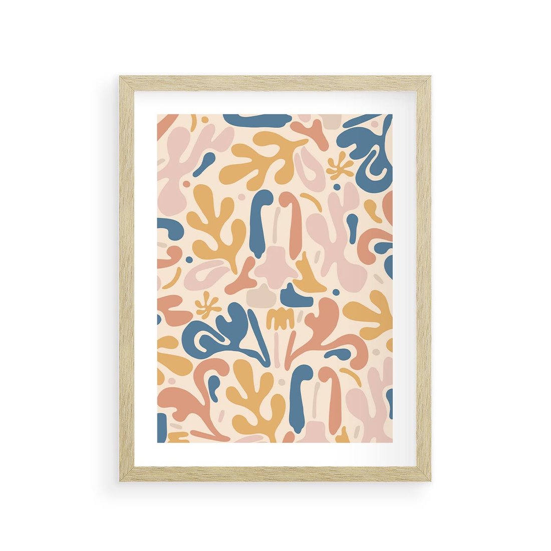Plakat w ramie 30x40 - Symfonia Radosnych Barw - abstrakcyjne pastelowe formy, nowoczesna grafika w stylu boho - rama drewno