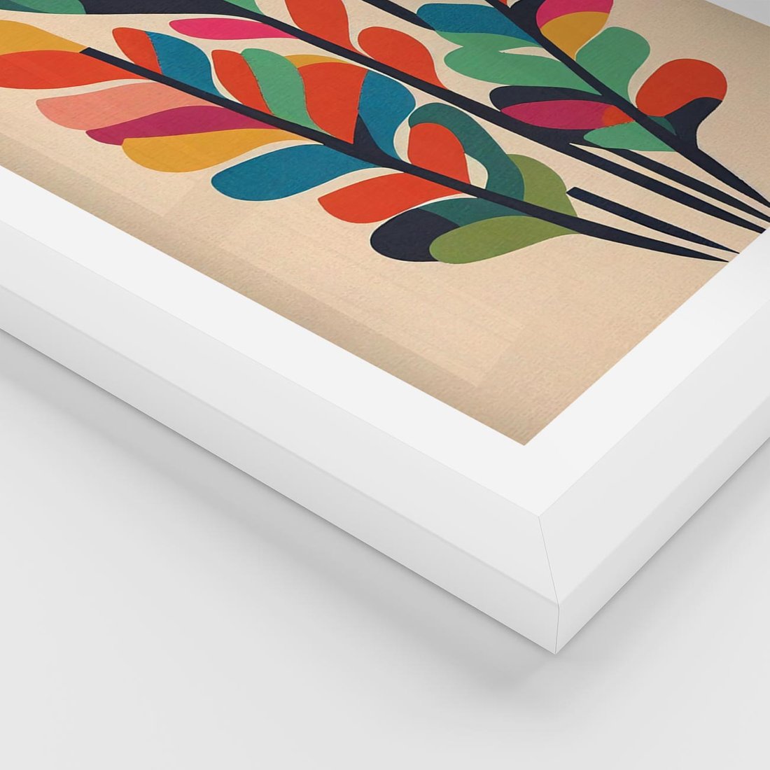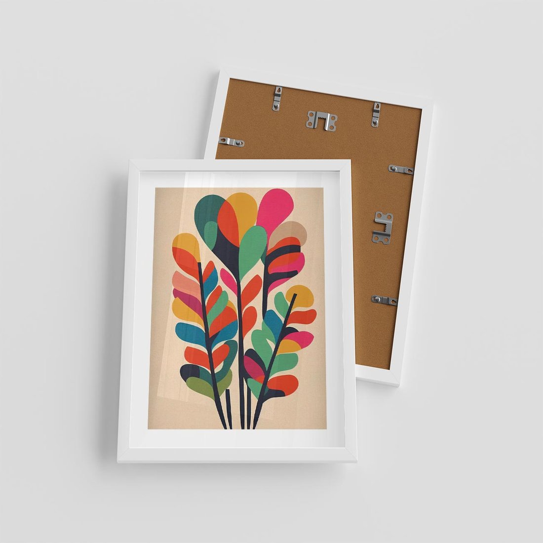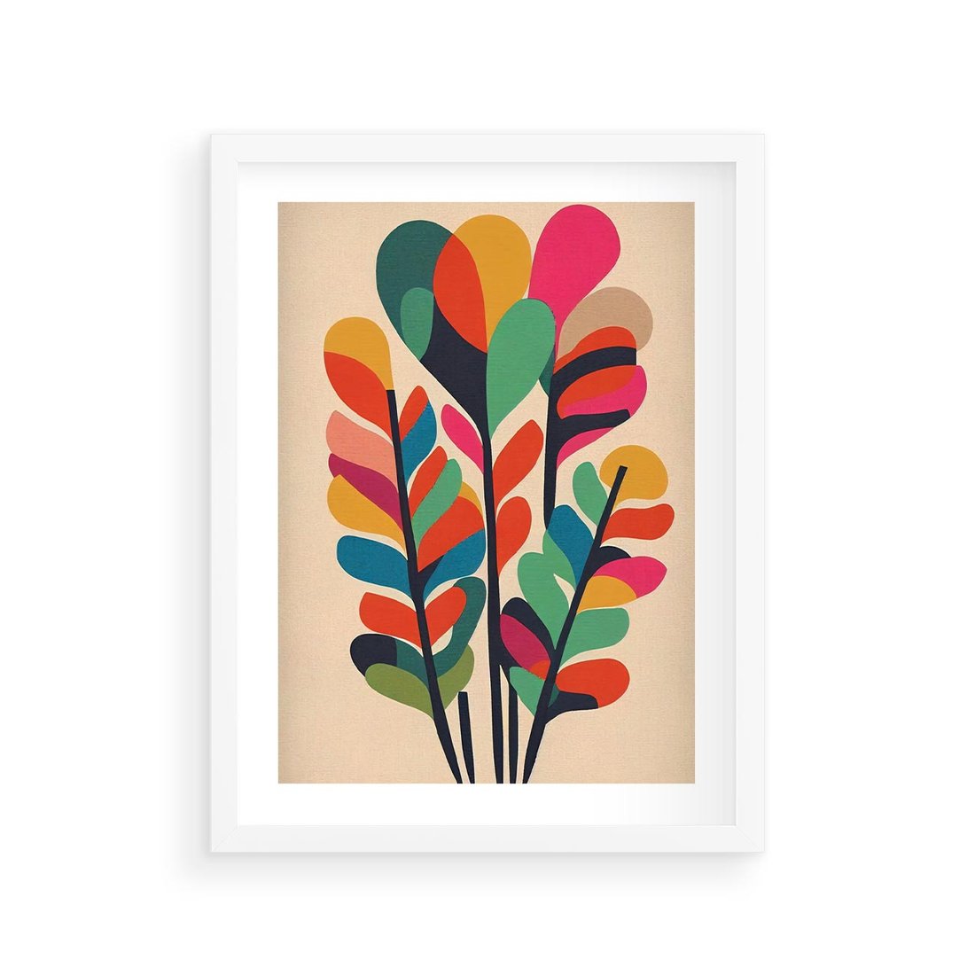 Plakat w ramie 30x40 - Symfonia Wzrokowych Impresji - abstrakcyjny kolorowy tęczowy obraz, inspiracje roślinne - rama biała