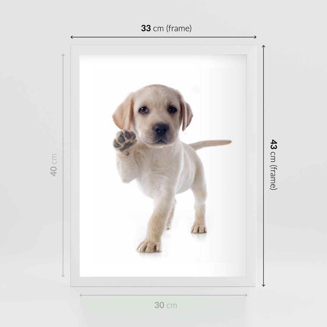 Plakat w ramie 30x40 - Szczeniak pełen radości - piesek, szczeniak - rama biała
