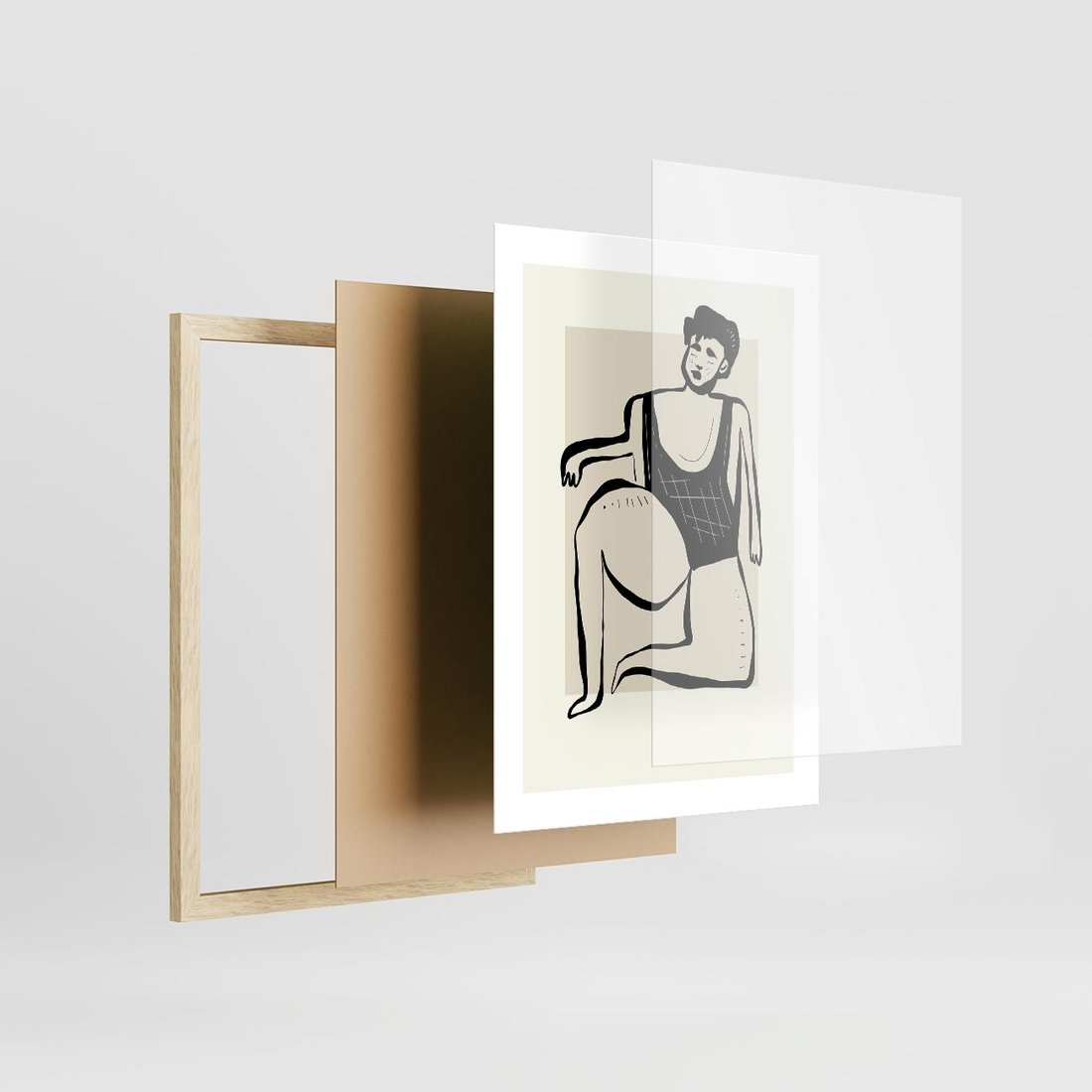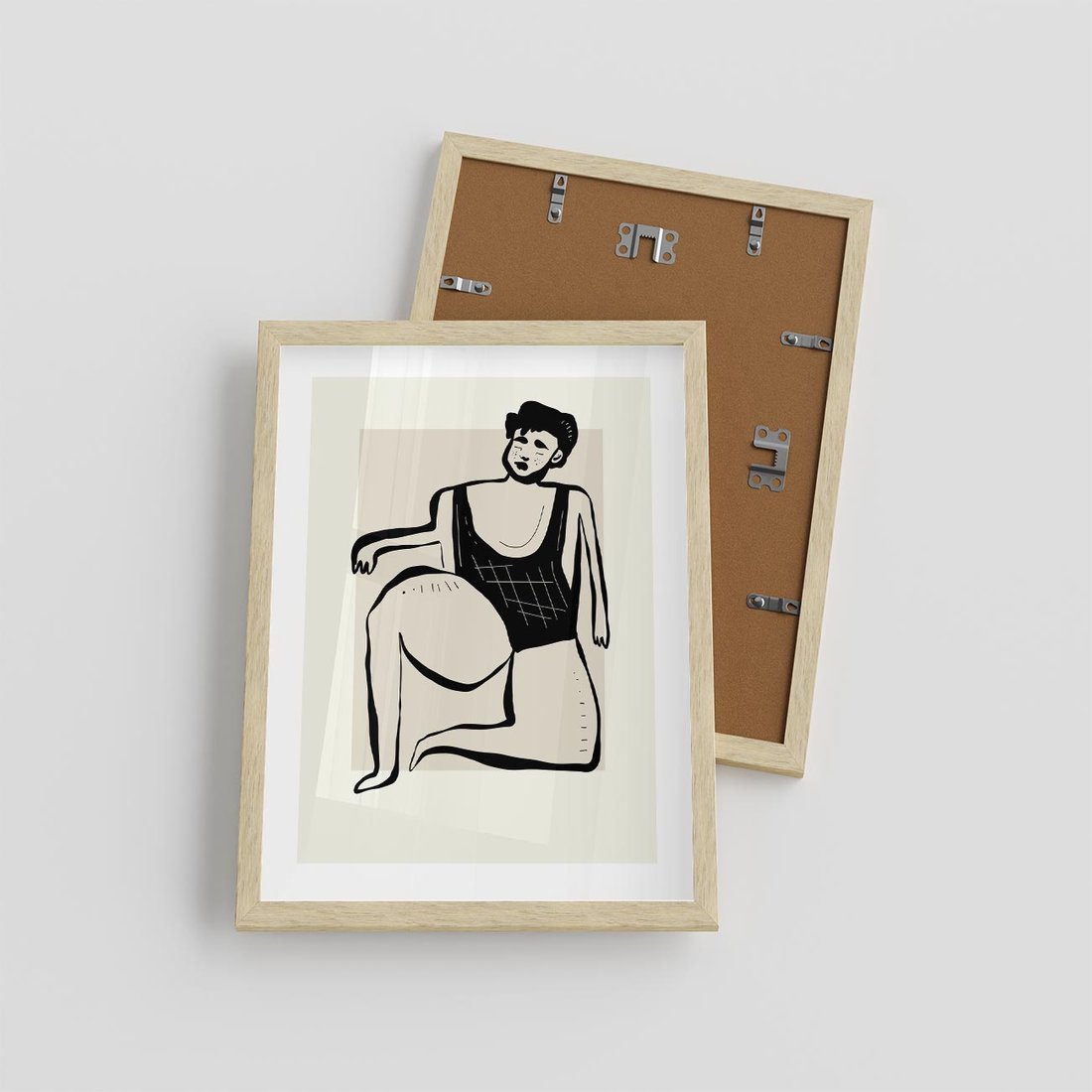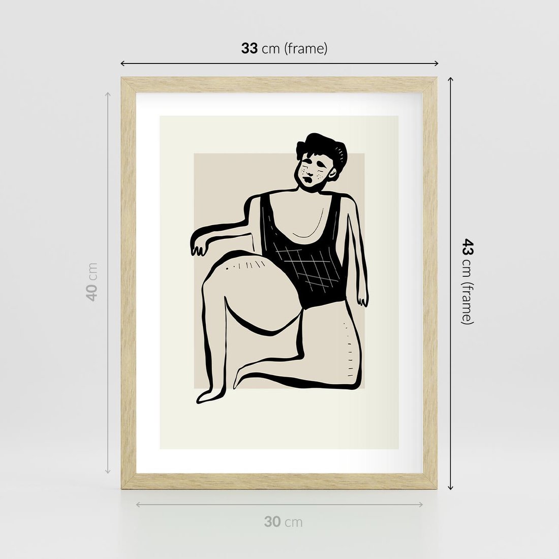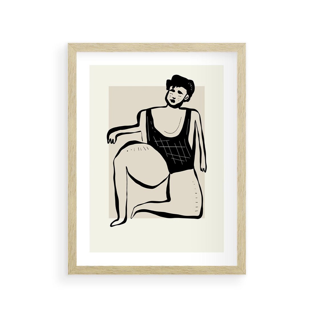 Plakat w ramie 30x40 - Szkic Kobiety w Czerni i Bieli - grafika, modern - rama drewno
