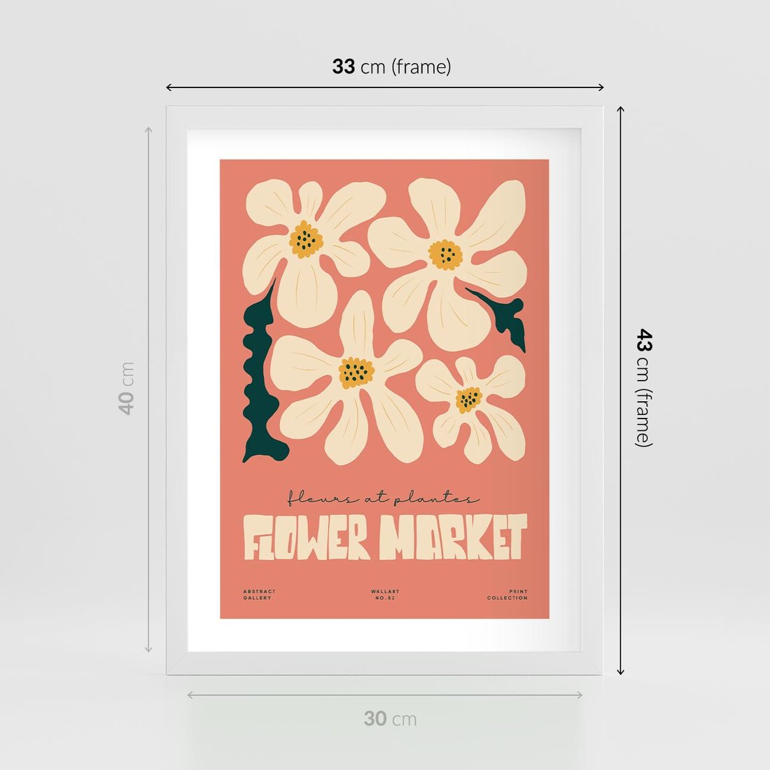 Plakat w ramie 30x40 - Szkicowane Kolorowe Uczucia - kwiatowa kompozycja, minimalizm - rama biała