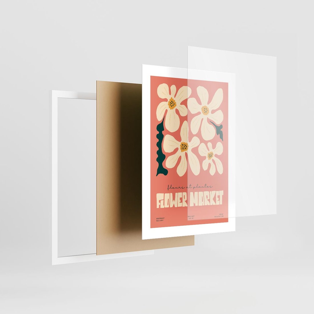 Ta kwiatowa kompozycja w minimalistycznym stylu prezentuje białe kwiaty na delikatnym różowym tle, z subtelnie umieszczoną typografią. To obraz, który doskonale łączy prostotę, piękno natury i estetykę typografii. Wprowadzi do wnętrza subtelny akcent kwiatowy, podkreślając równocześnie elegancję i spokój minimalistycznego designu.