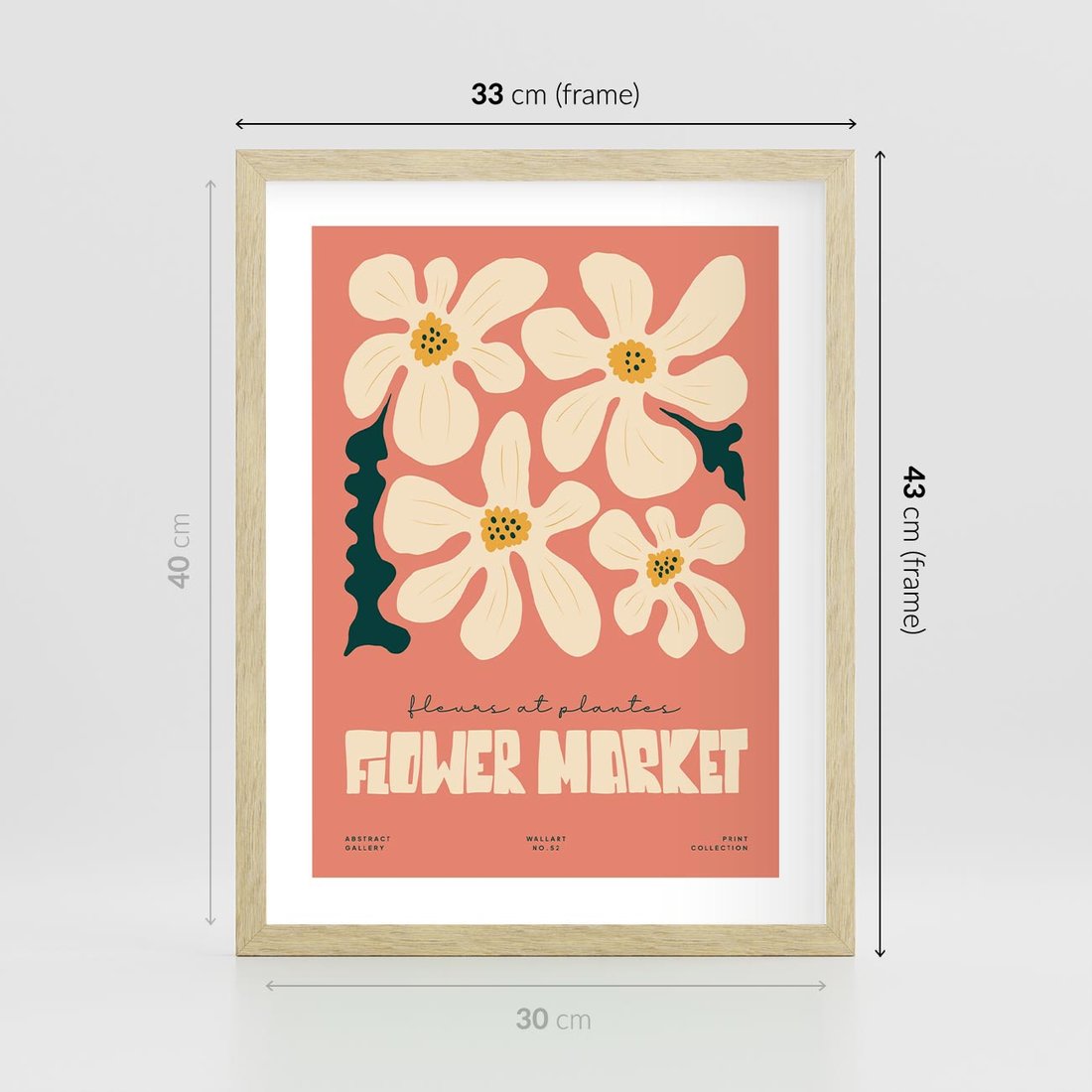 Plakat w ramie 30x40 - Szkicowane Kolorowe Uczucia - kwiatowa kompozycja, minimalizm - rama drewno