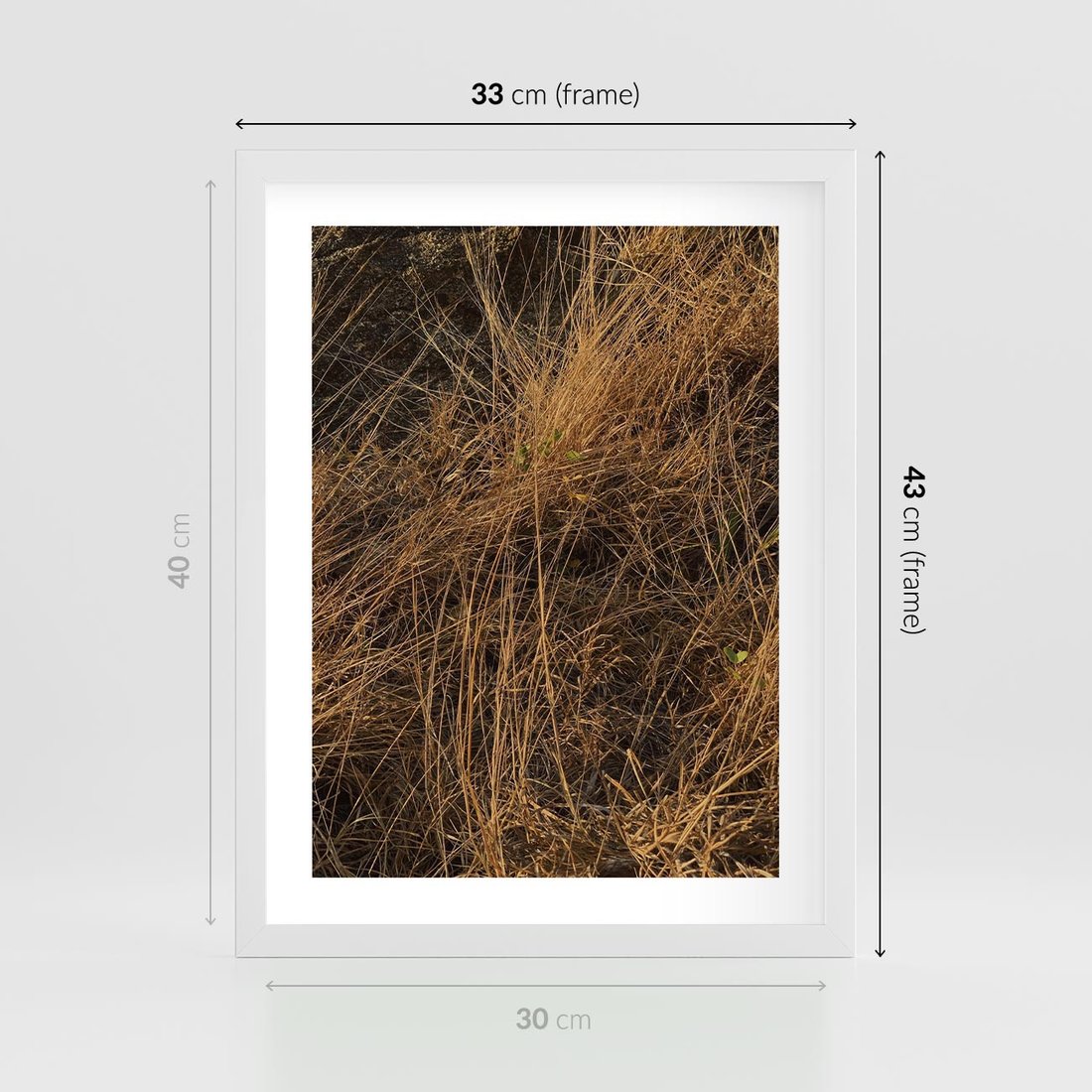 Plakat w ramie 30x40 - Szlachetna Suchość Traw - trawy, suche trawy - rama biała