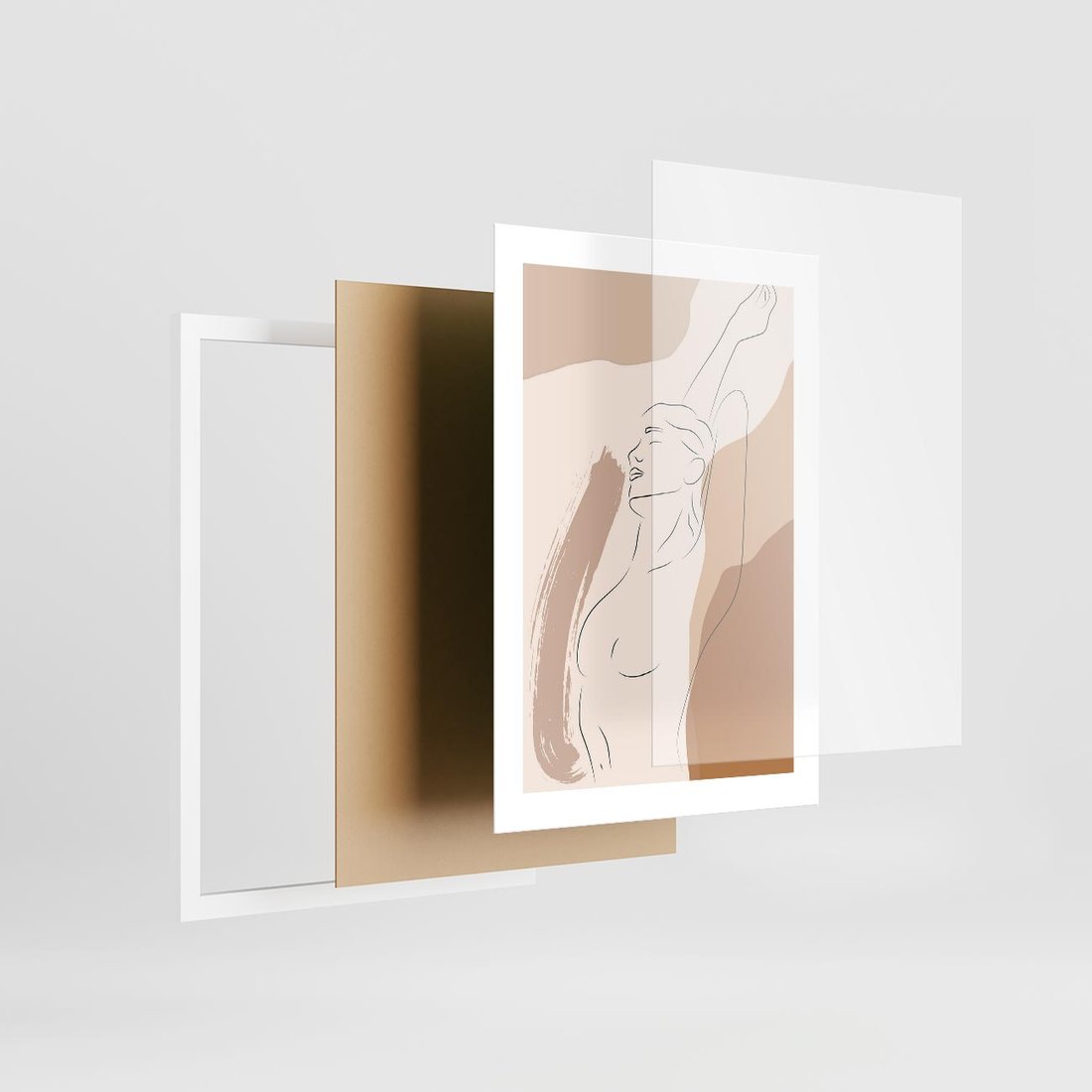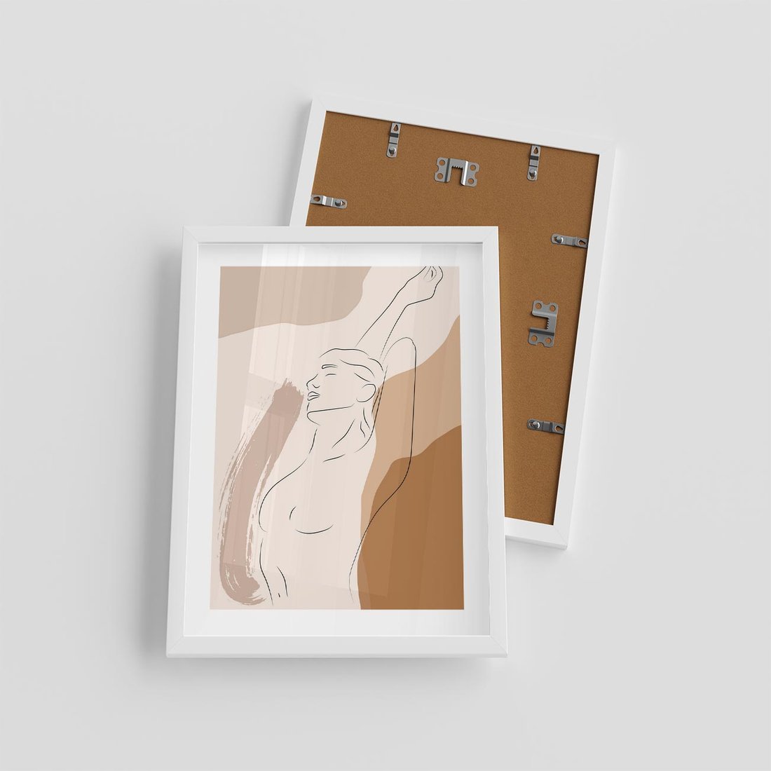 Plakat w ramie 30x40 - Sztuka Nagiej Formy - szkic nagiej kobiety, kolory beżowe - rama biała