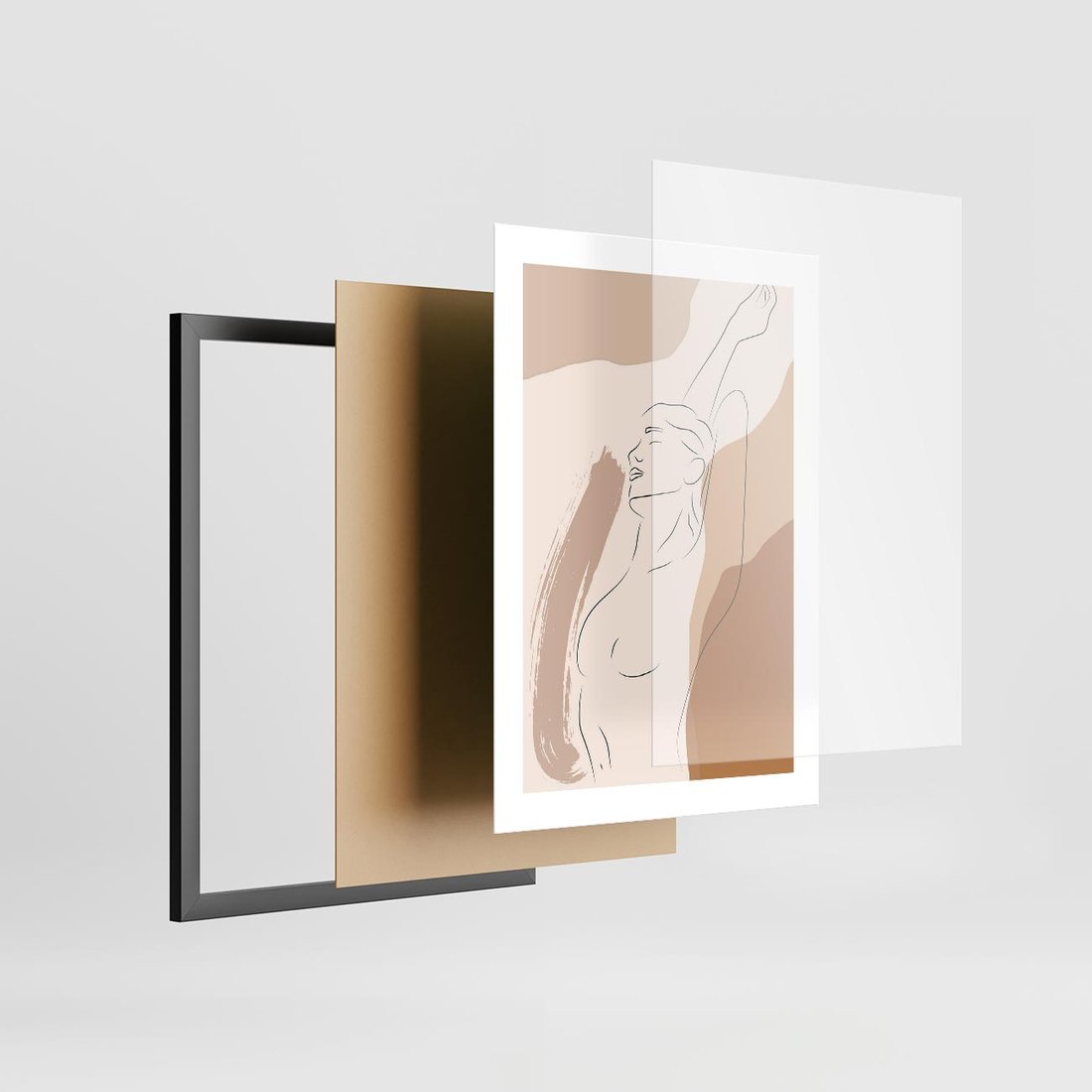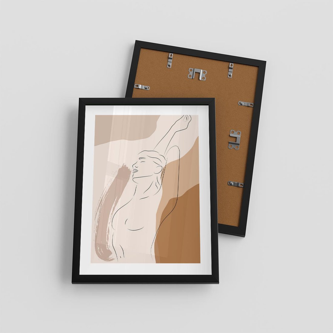 Plakat w ramie 30x40 - Sztuka Nagiej Formy - szkic nagiej kobiety, kolory beżowe - rama czarna