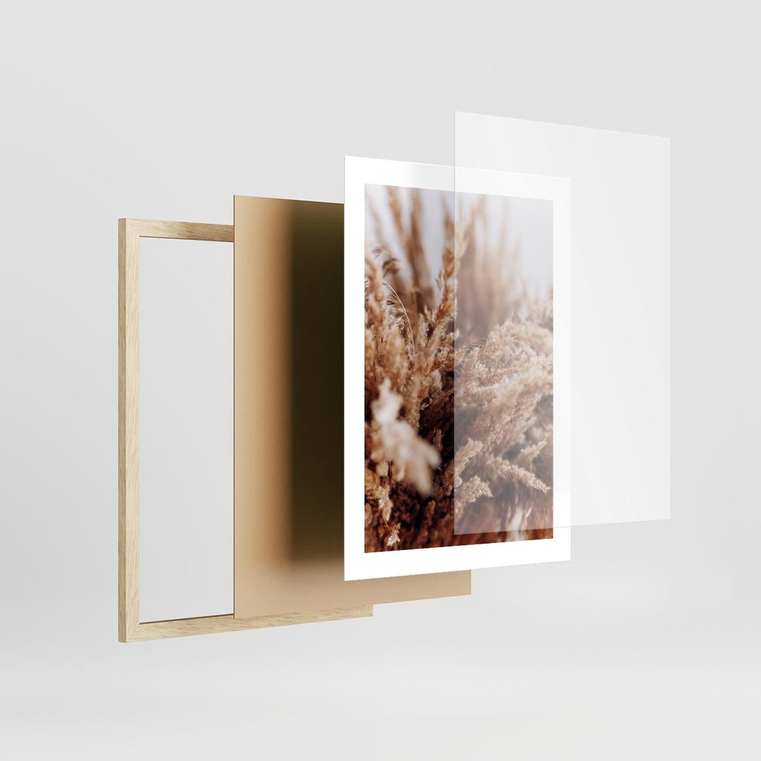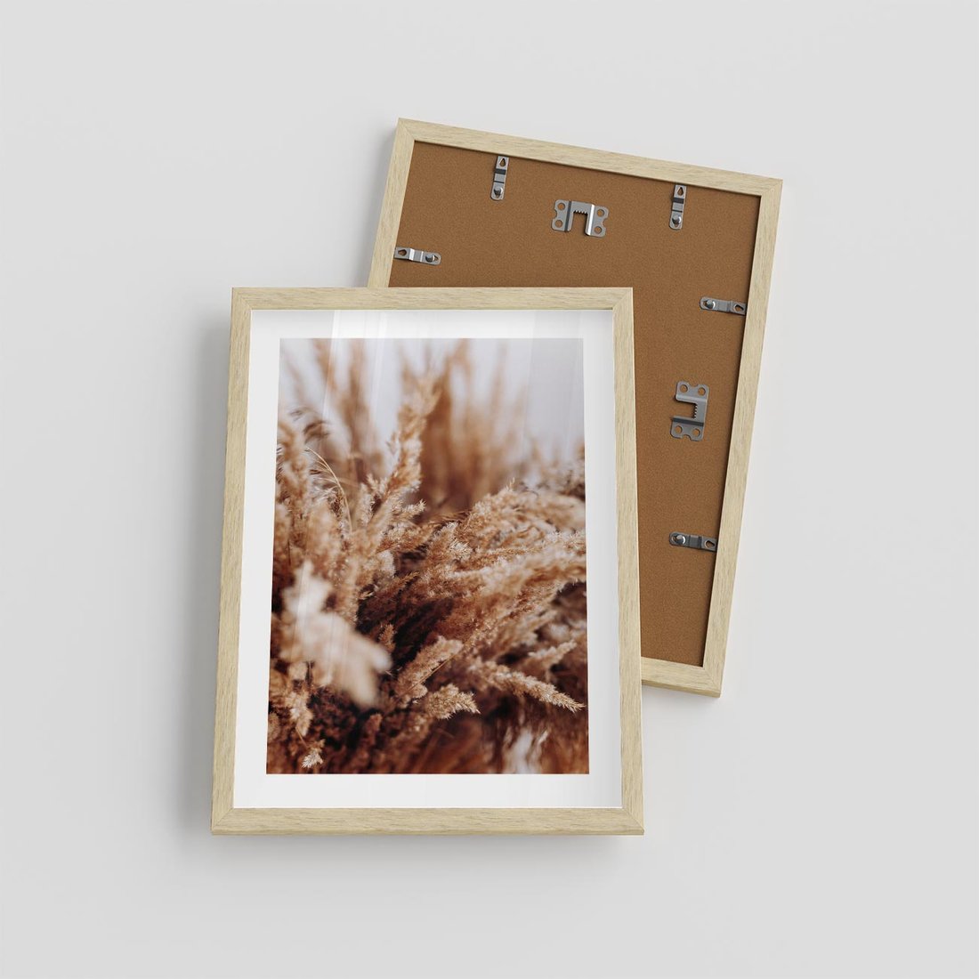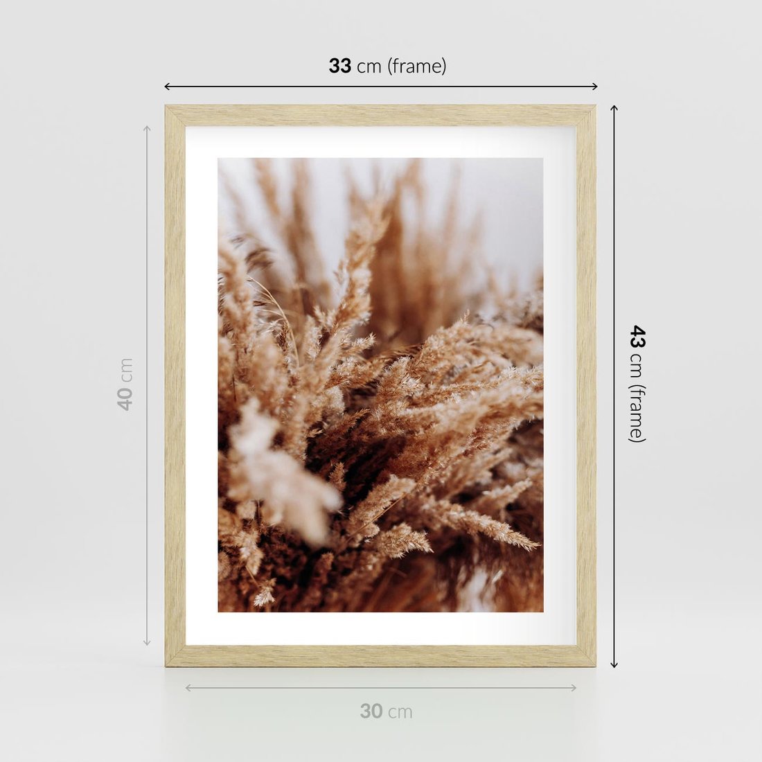 Plakat w ramie 30x40 - Sztuka Suszonych Traw - trawa pampas, suszone trawy - rama drewno