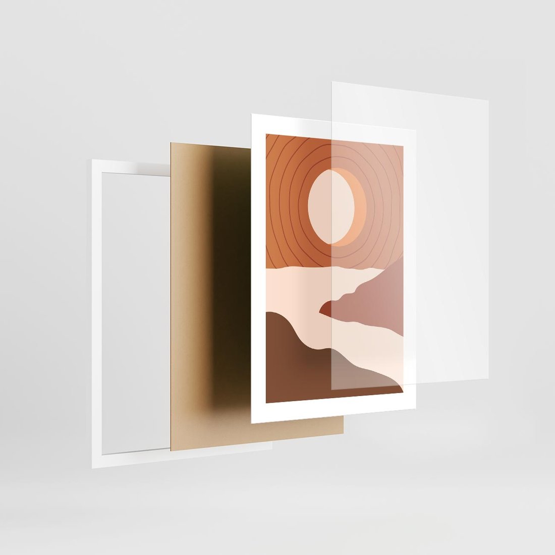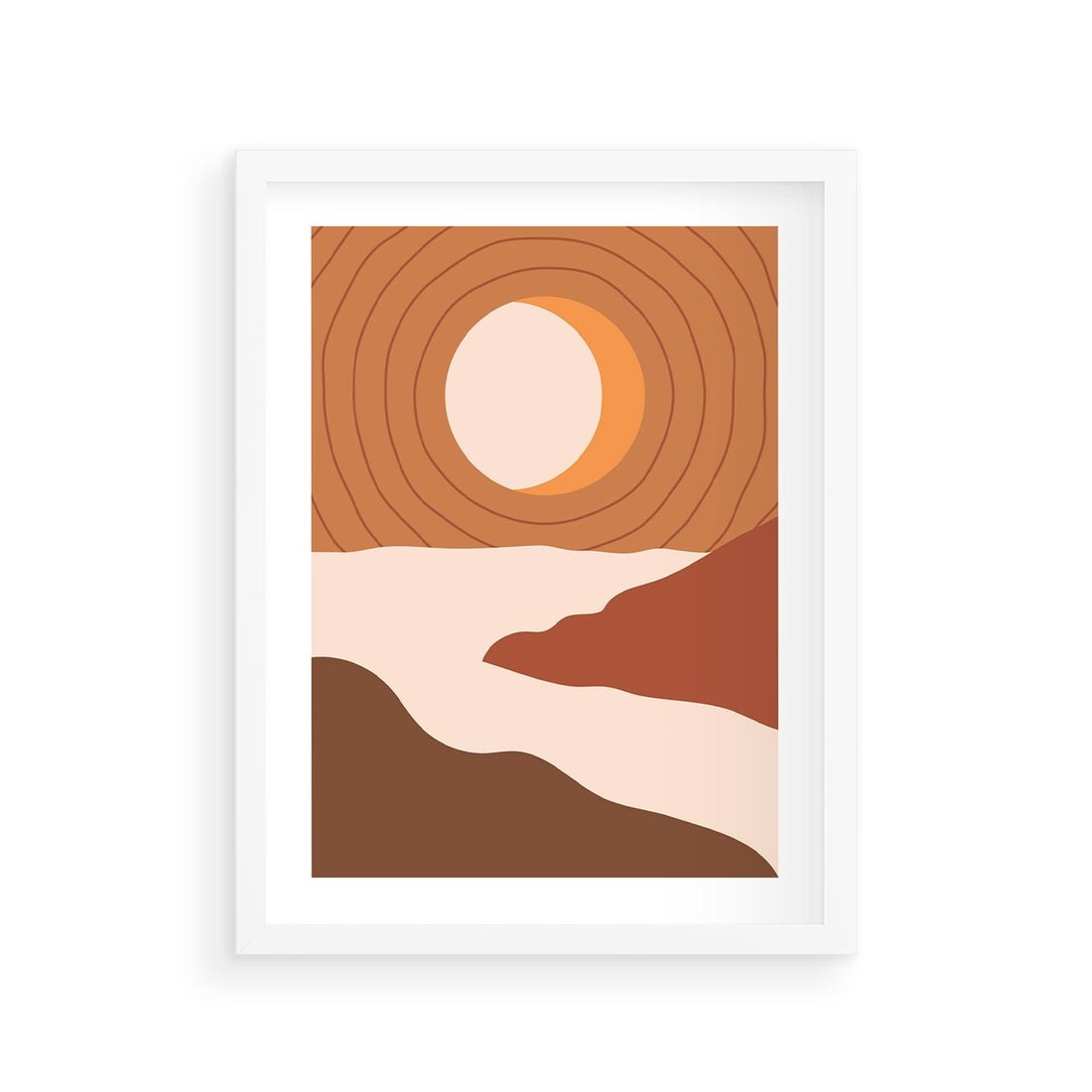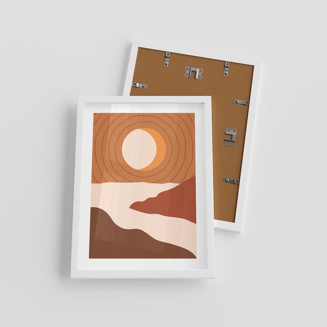 Plakat w ramie 30x40 - Sztuka Zachodu Słońca: Nowoczesna Sceneria - plakat, nowoczesna grafika - rama biała