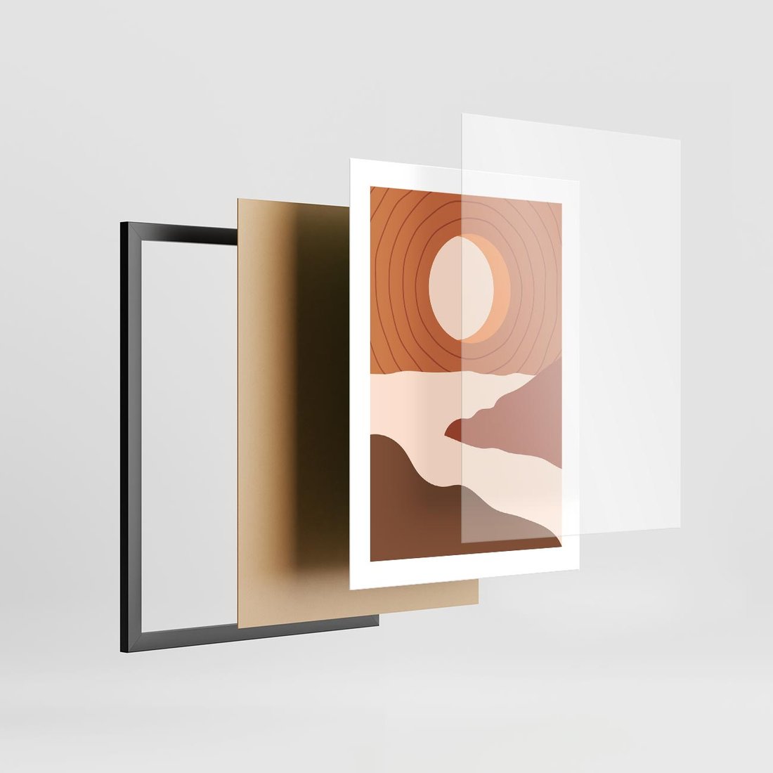 Plakat w ramie 30x40 - Sztuka Zachodu Słońca: Nowoczesna Sceneria - plakat, nowoczesna grafika - rama czarna