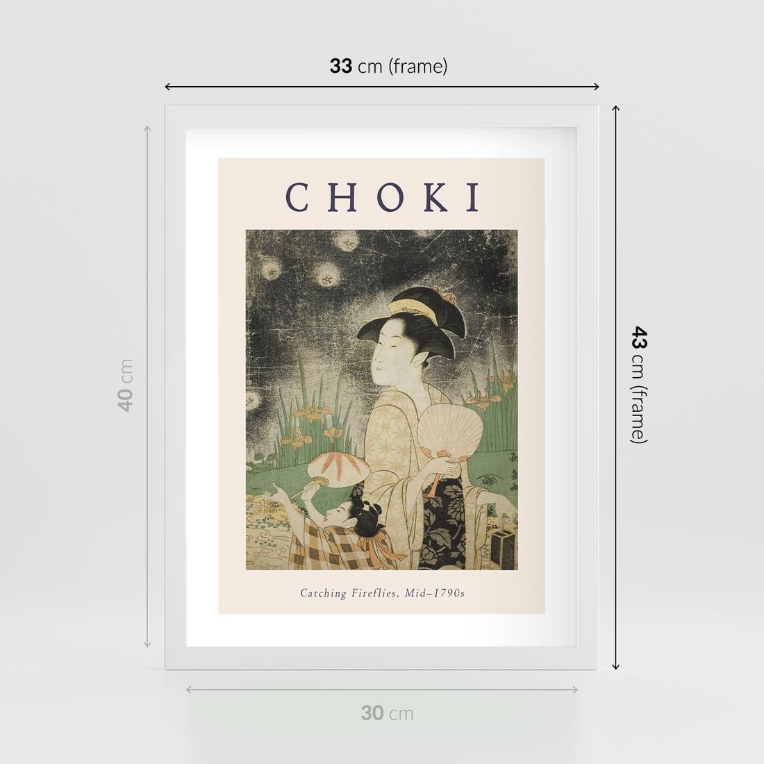 Obraz przedstawia reprodukcję ryciny, która nawiązuje do sztuki Chokiego, łączącej wpływy kultury chińskiej i japońskiej. Ta kompozycja jest pełna delikatności i subtelności.