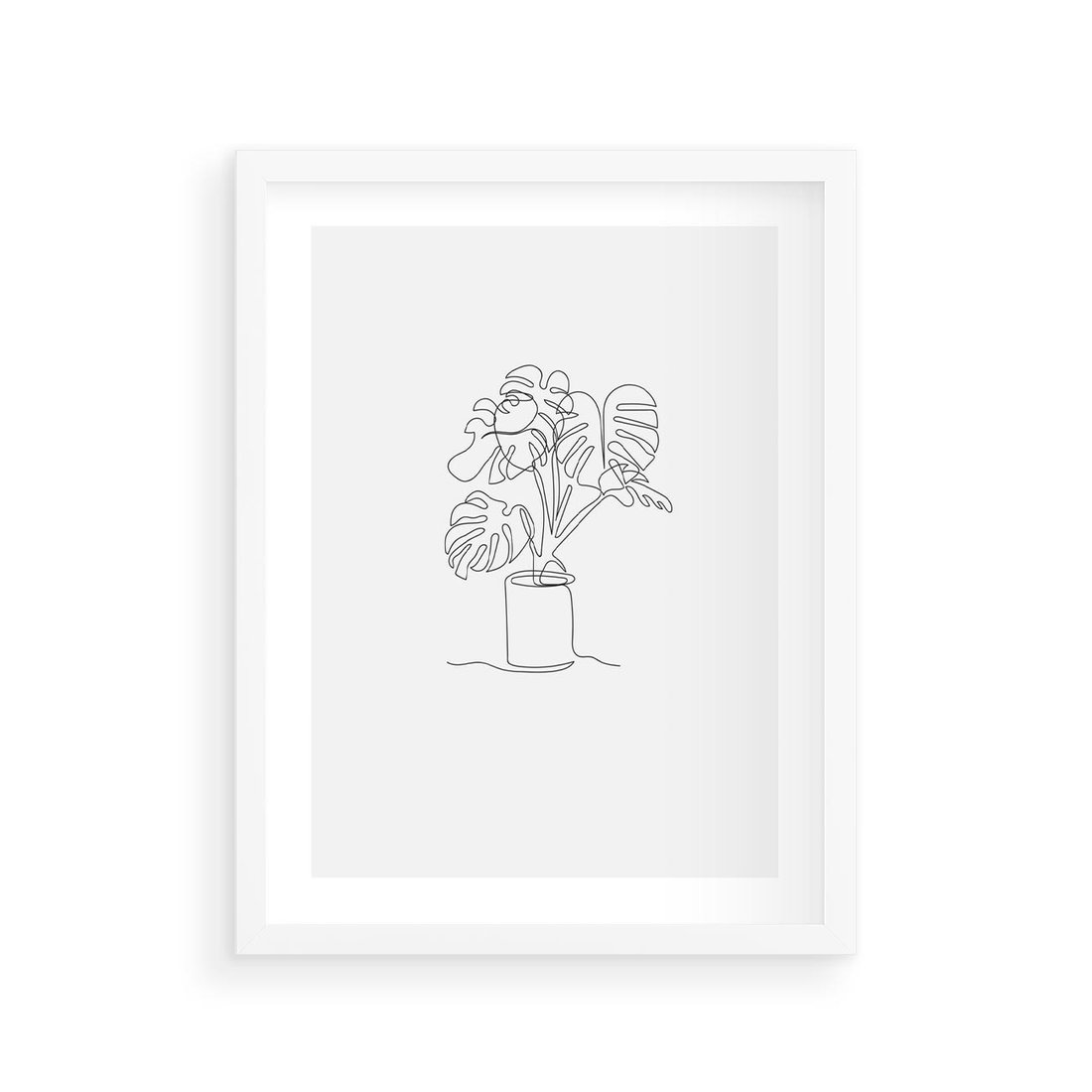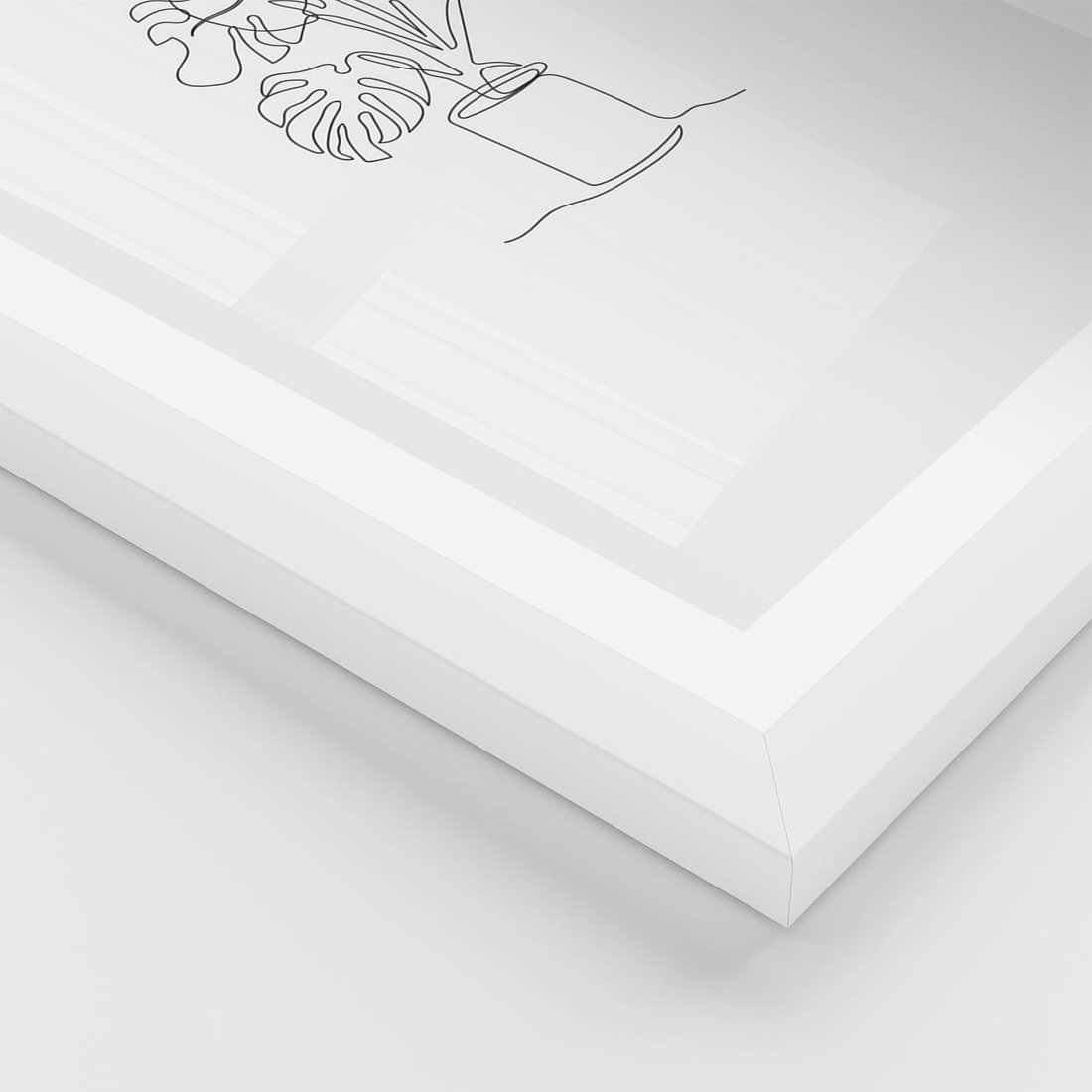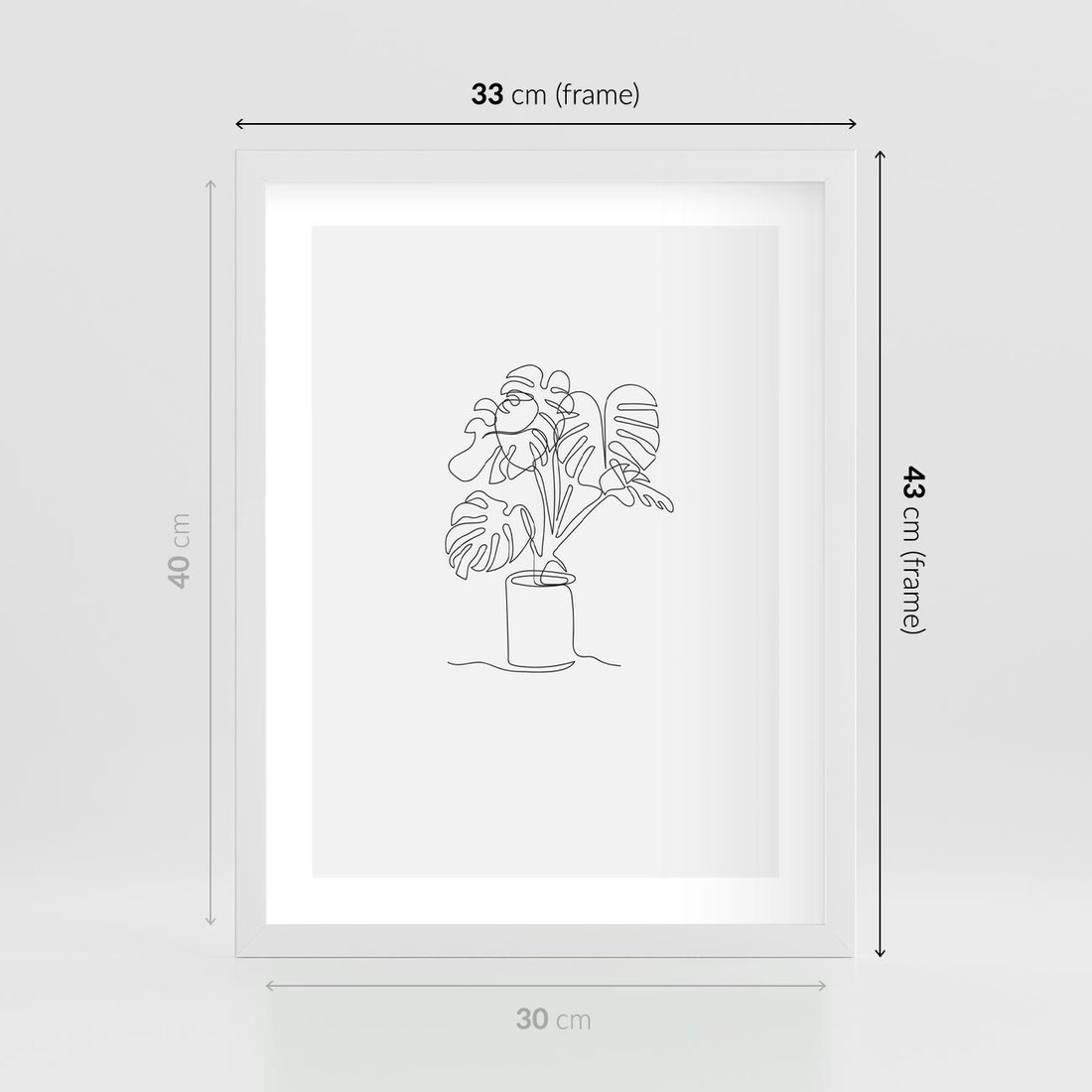 Plakat w ramie 30x40 - Tajemnicza Harmonia - sztuka one line, monstera - rama biała
