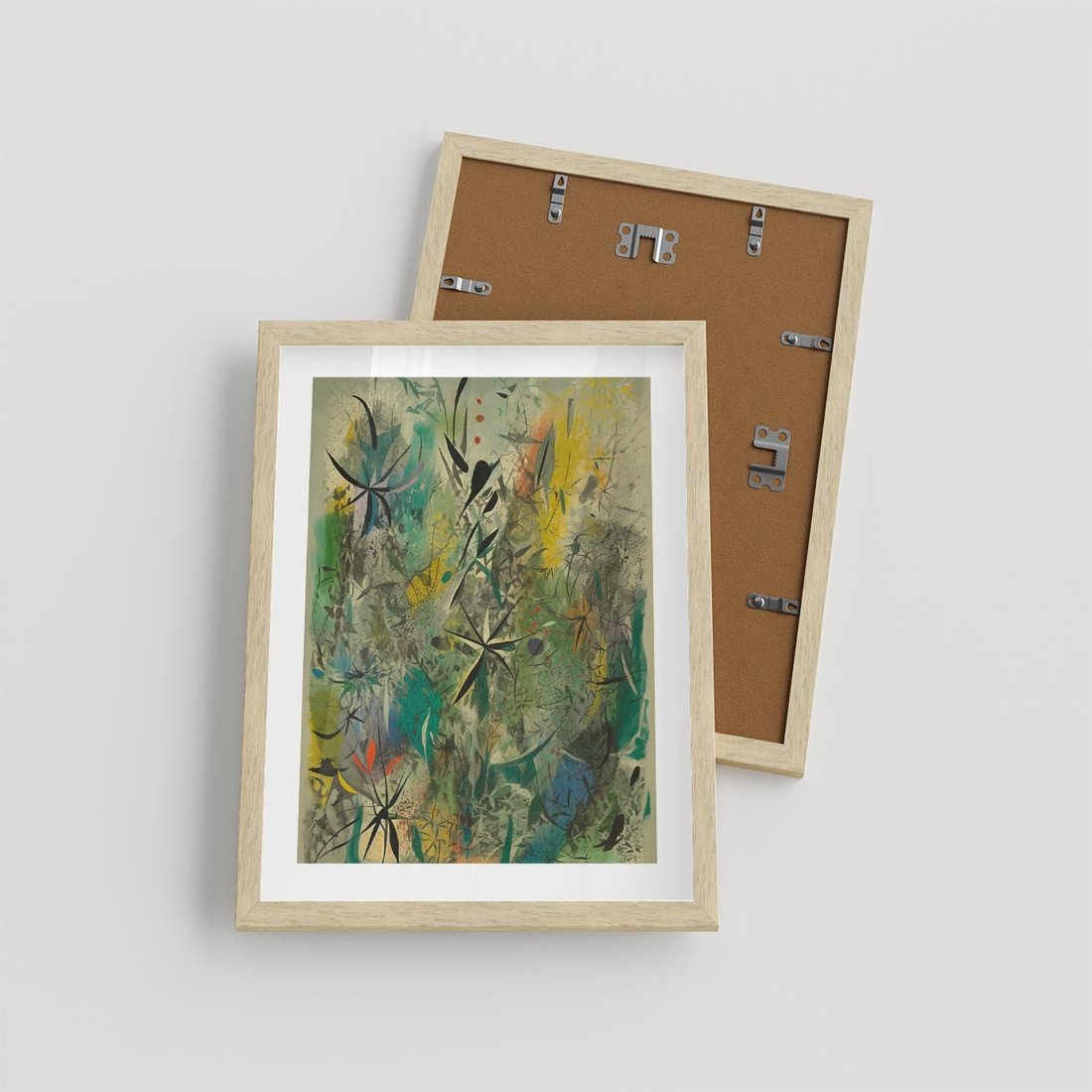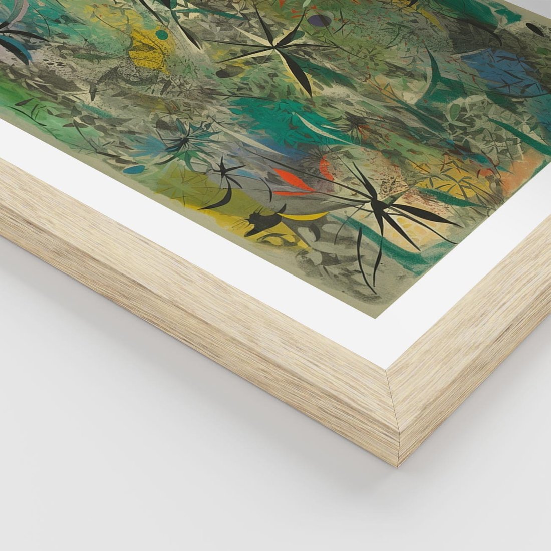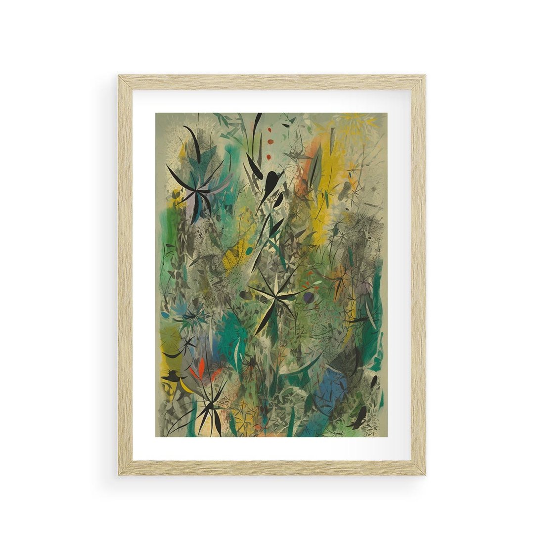 Ten abstrakcyjny obraz to prawdziwa eksplozja kolorów i małych, zawiłych elementów. Ich kształty tworzą harmonijną całość, wzbogaconą o roślinne motywy. Ciekawa i intrygująca kompozycja przyciąga uwagę i inspiruje do refleksji.