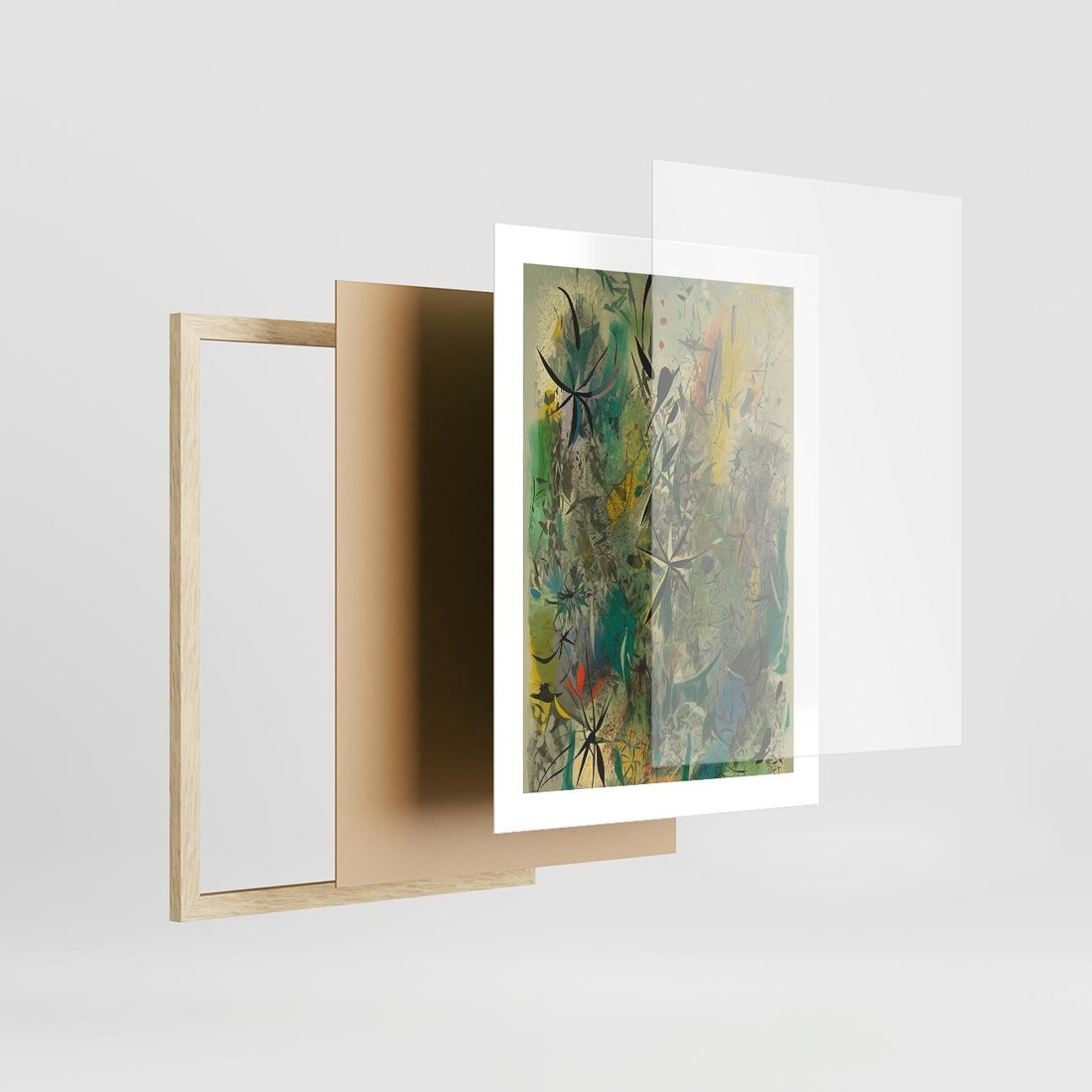 Plakat w ramie 30x40 - Tajemnicze Konstrukcje Form - abstrakcyjny obraz, mnogość kolorów - rama drewno