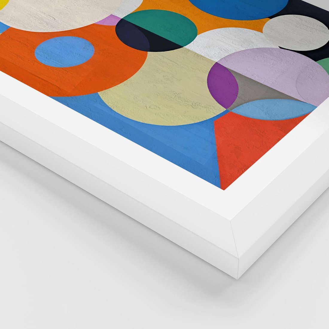 Ten olejny obraz to prawdziwa uczta dla oczu, dzięki abstrakcyjnym geometrycznym kształtom w postaci dynamicznych kół. Intensywne, żywe kolory nadają mu energii i głębi, tworząc unikalną kompozycję, która wciąga i zachwyca. To prawdziwa sztuka, która wzbogaci każde wnętrze.