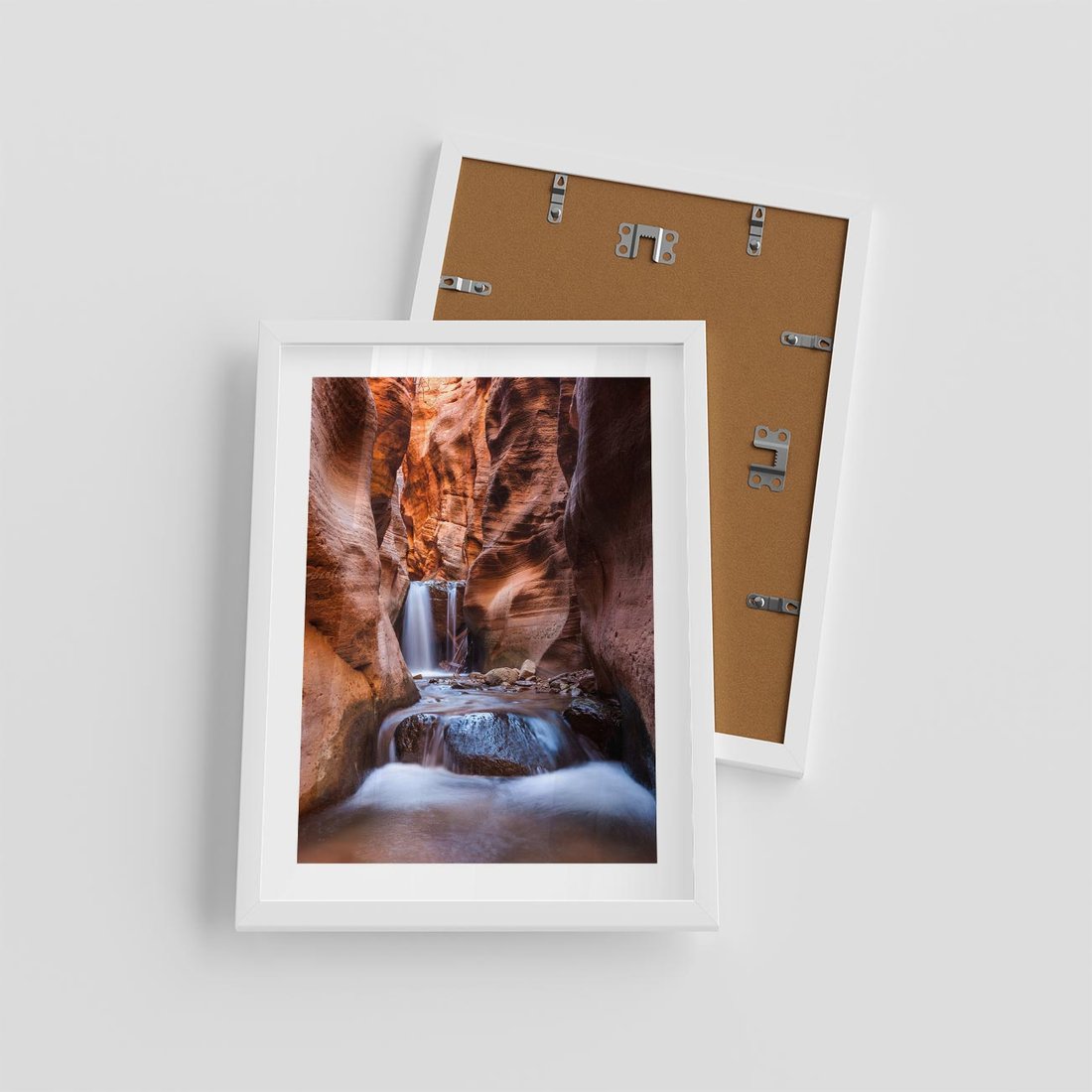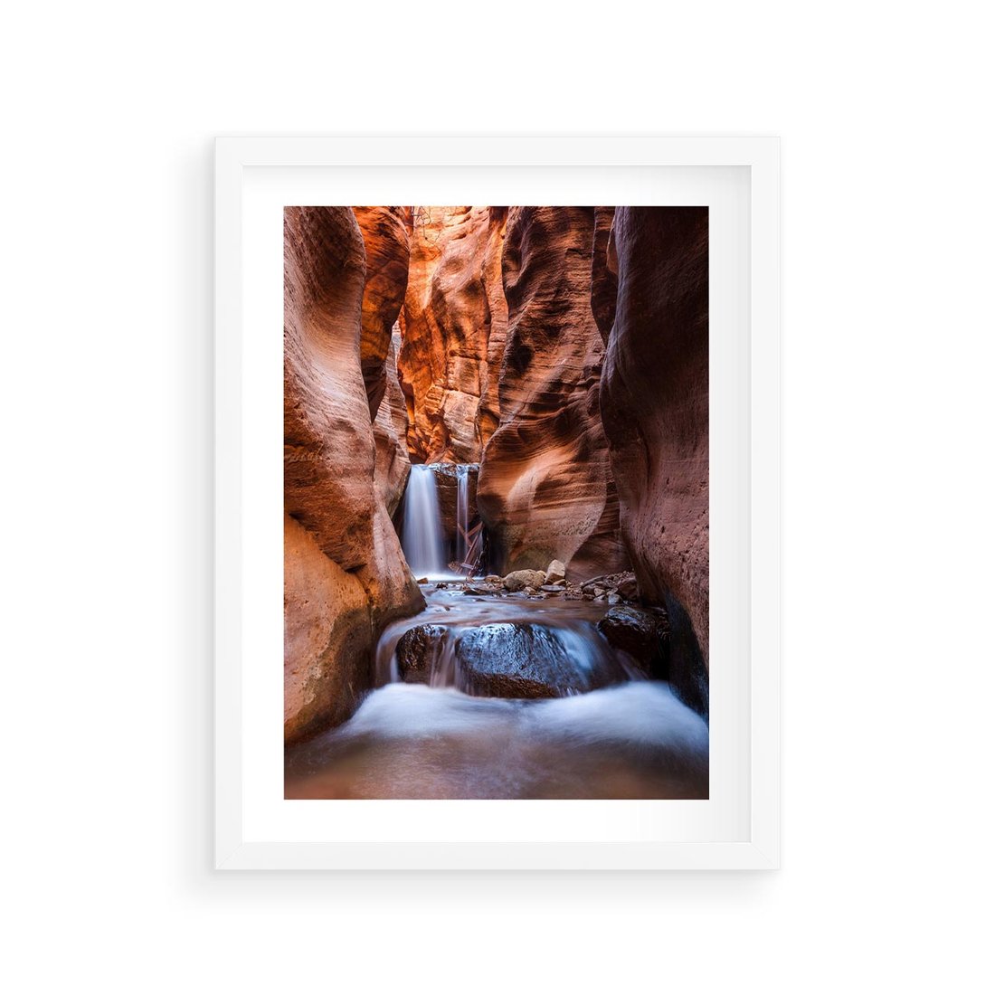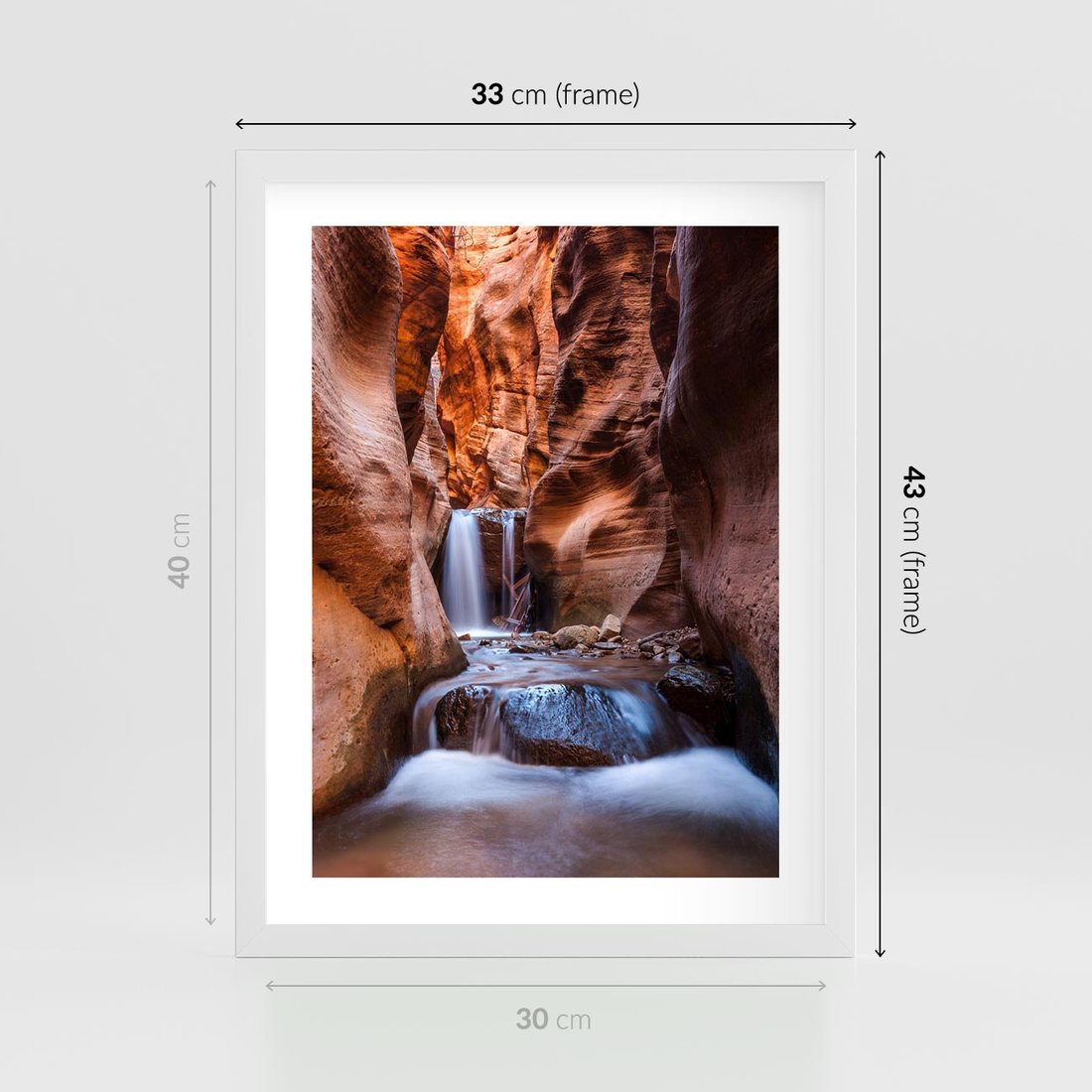 Plakat w ramie 30x40 - Tajemniczy świat jaskini i wodospadu - jaskinia, wodospad - rama biała