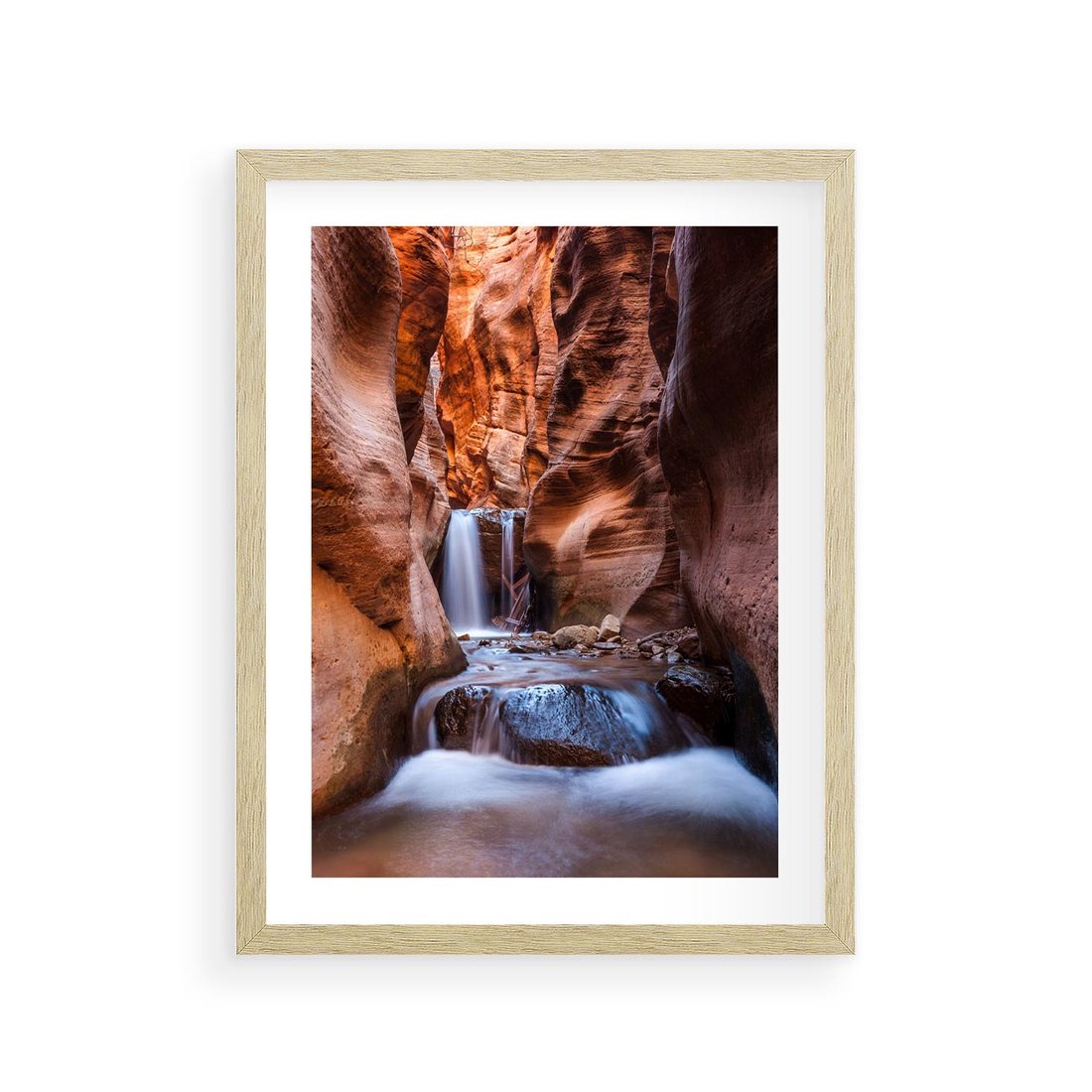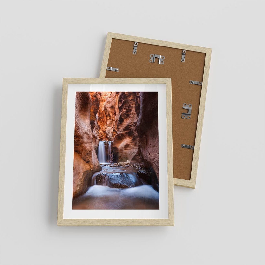 Plakat w ramie 30x40 - Tajemniczy świat jaskini i wodospadu - jaskinia, wodospad - rama drewno