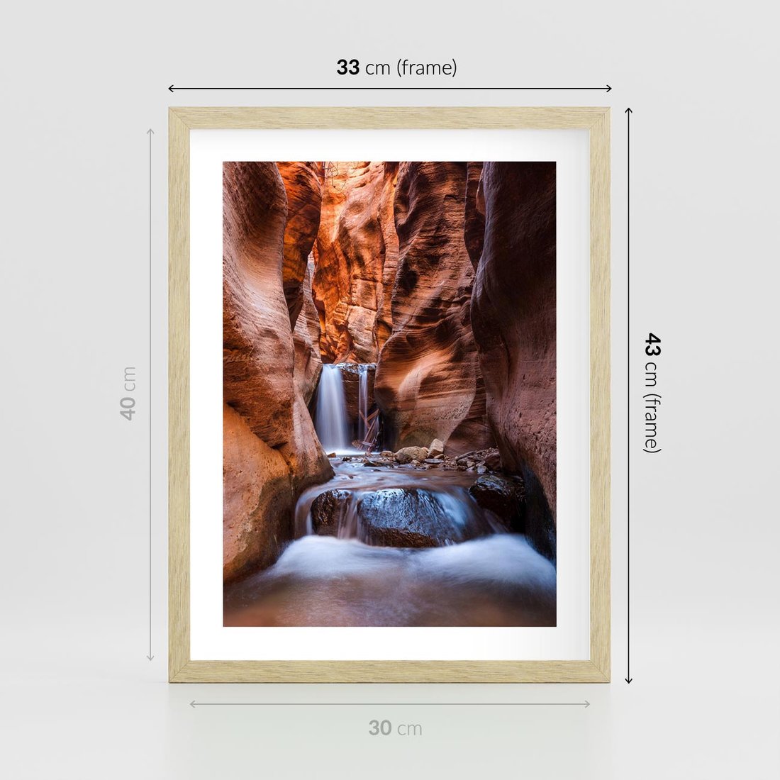 - Plakat w ramie 30x40 - Tajemniczy świat jaskini i wodospadu