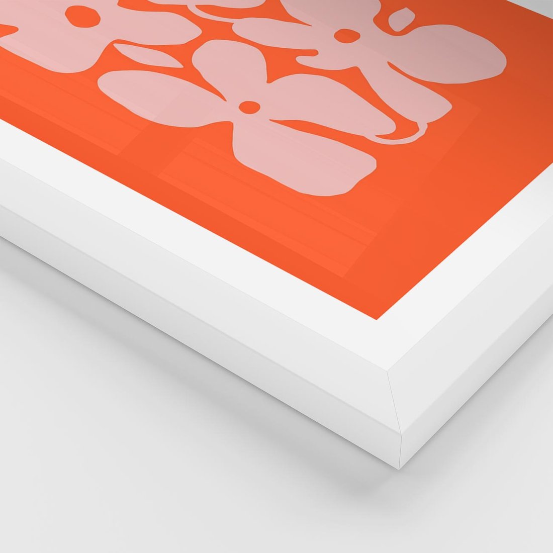 Plakat w ramie 30x40 - Taniec Abstrakcji - kwiaty, energetyczne pomarańczowe tłó - rama biała