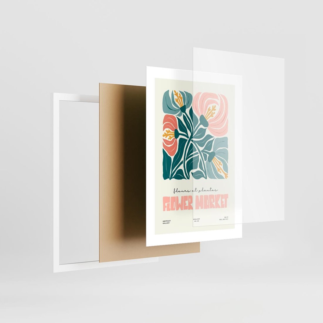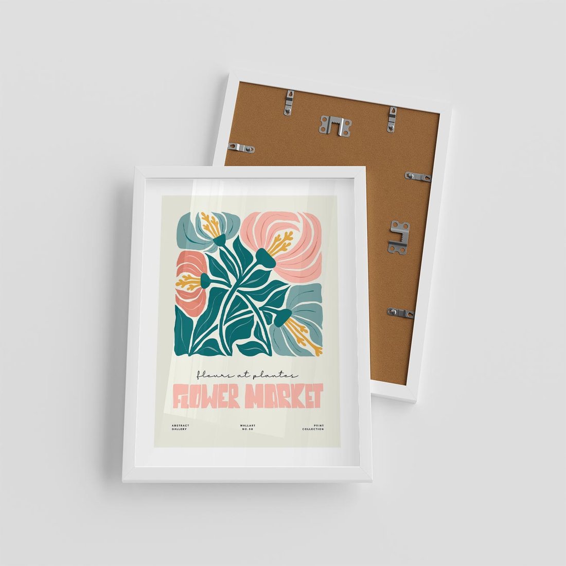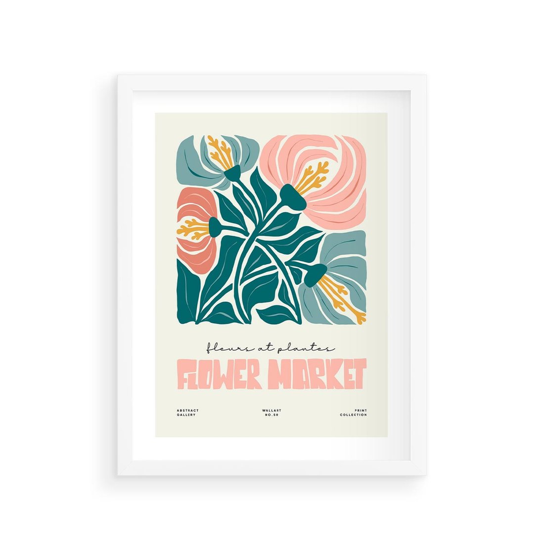 Plakat w ramie 30x40 - Taniec Kształtów - kwiaty, abstrakcyjna kompozycja - rama biała