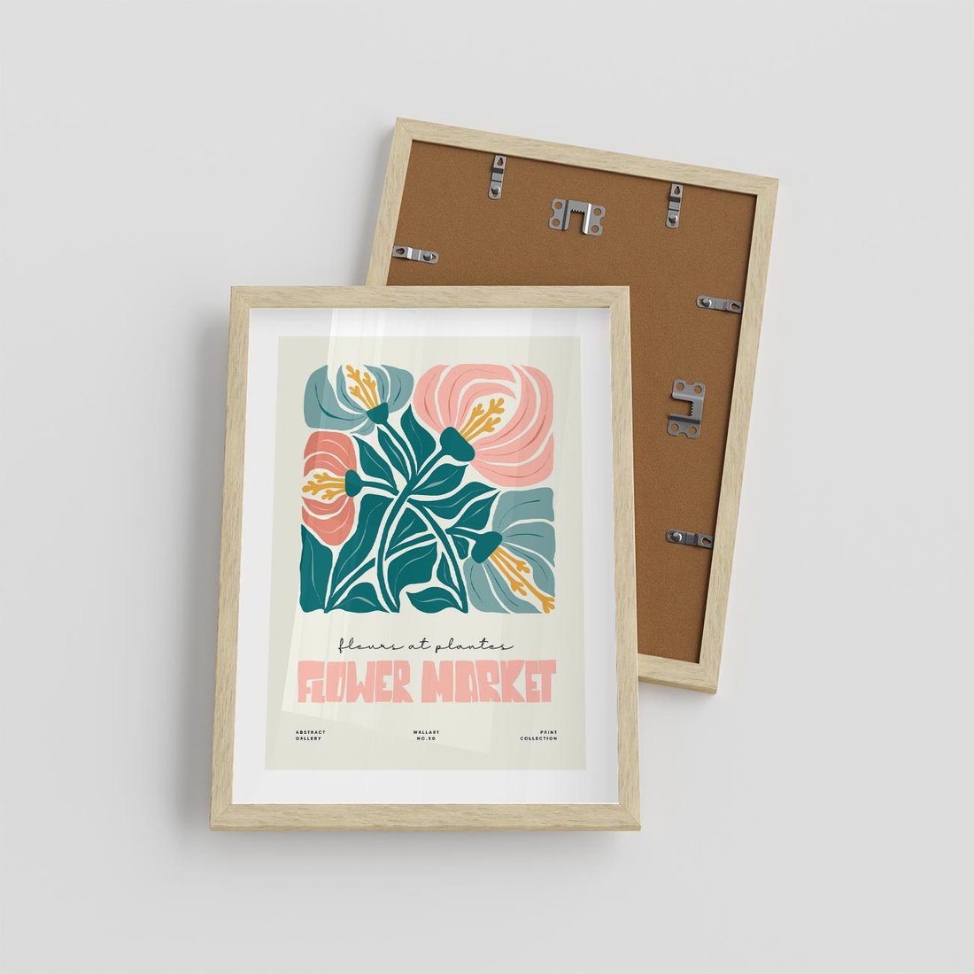 Plakat w ramie 30x40 - Taniec Kształtów - kwiaty, abstrakcyjna kompozycja - rama drewno