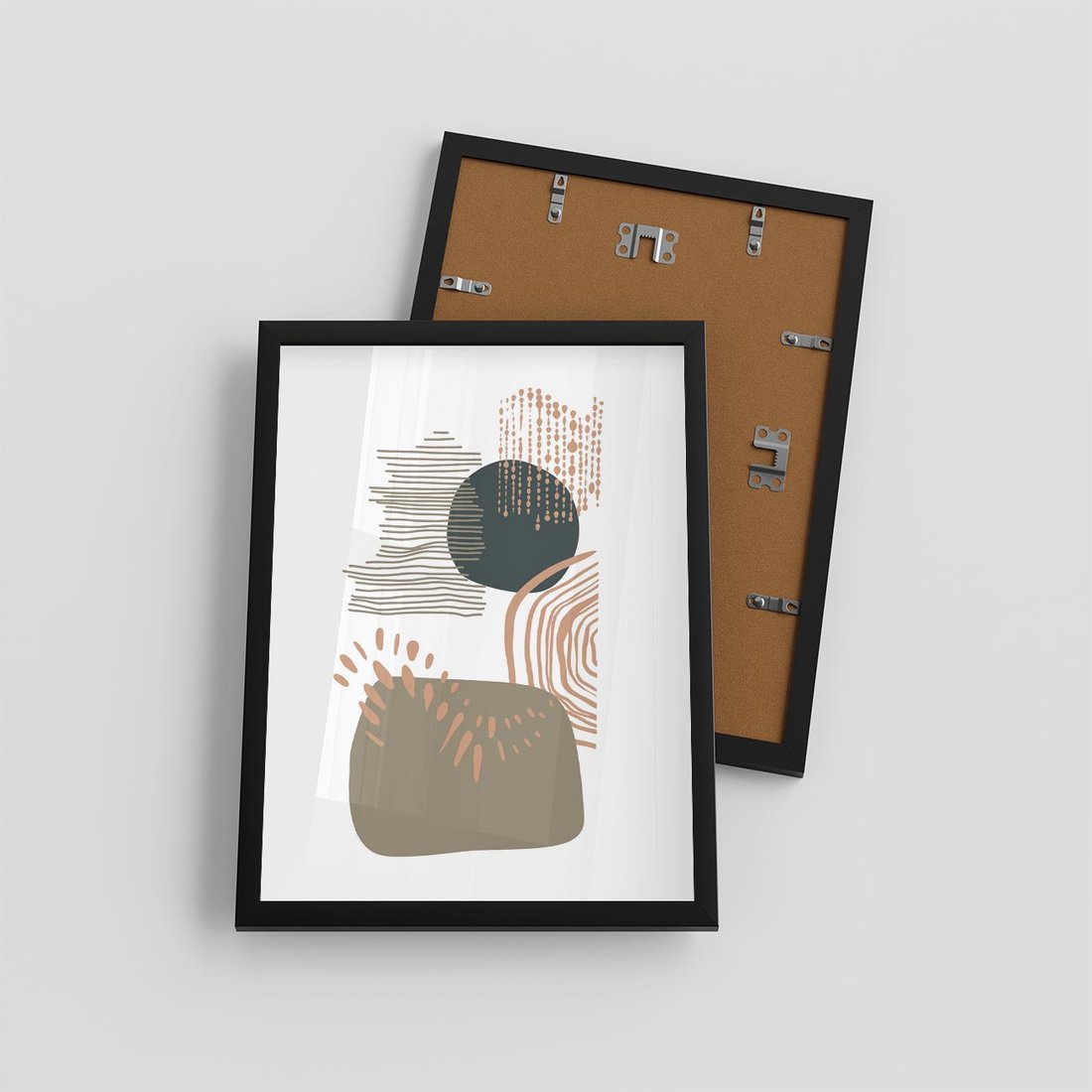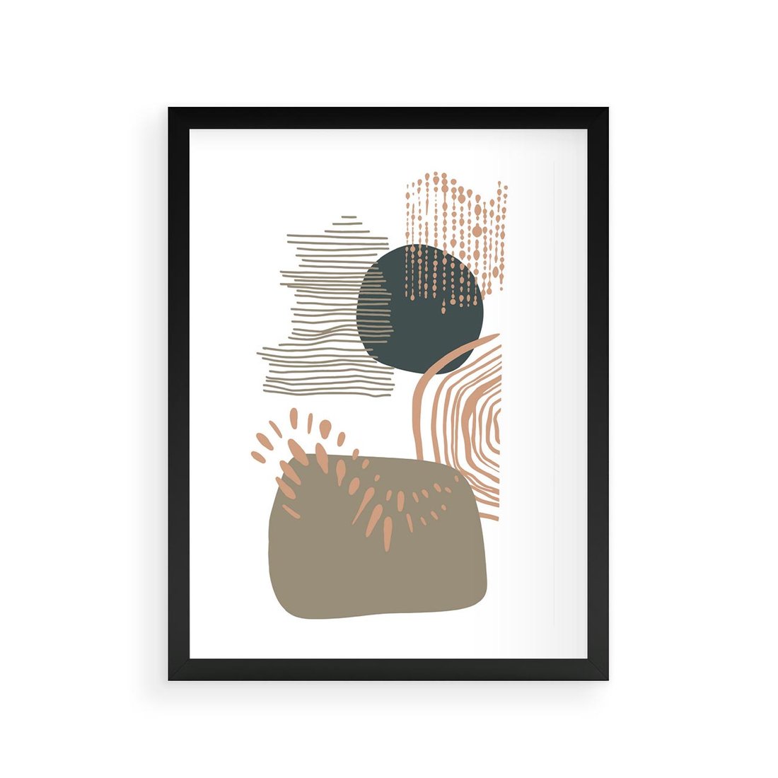 Ta abstrakcyjna kompozycja składa się z delikatnych kropek, kresek i kółek w spokojnych odcieniach brązu i beżu. Jej minimalistyczny charakter przynosi uczucie harmonii i spokoju, doskonale pasując do każdego wnętrza.