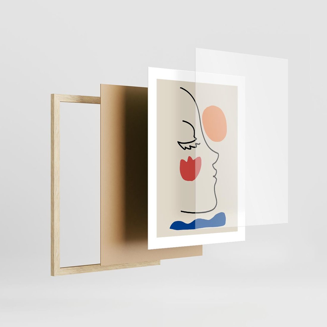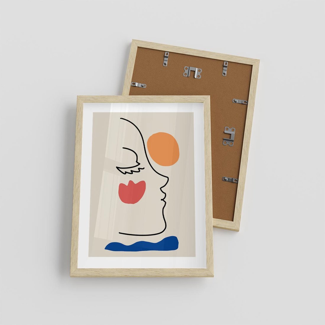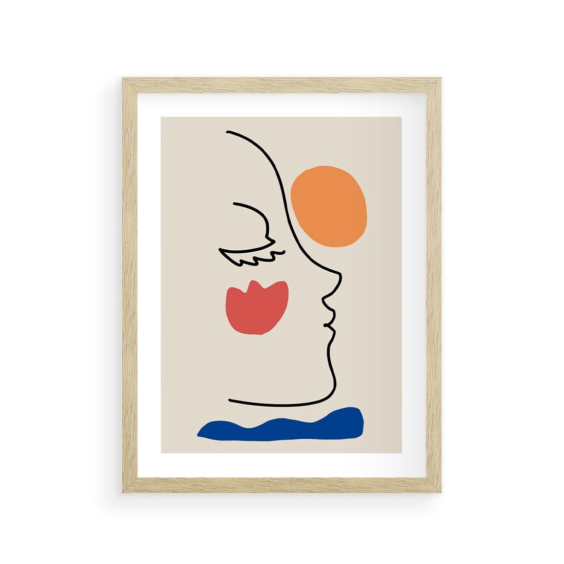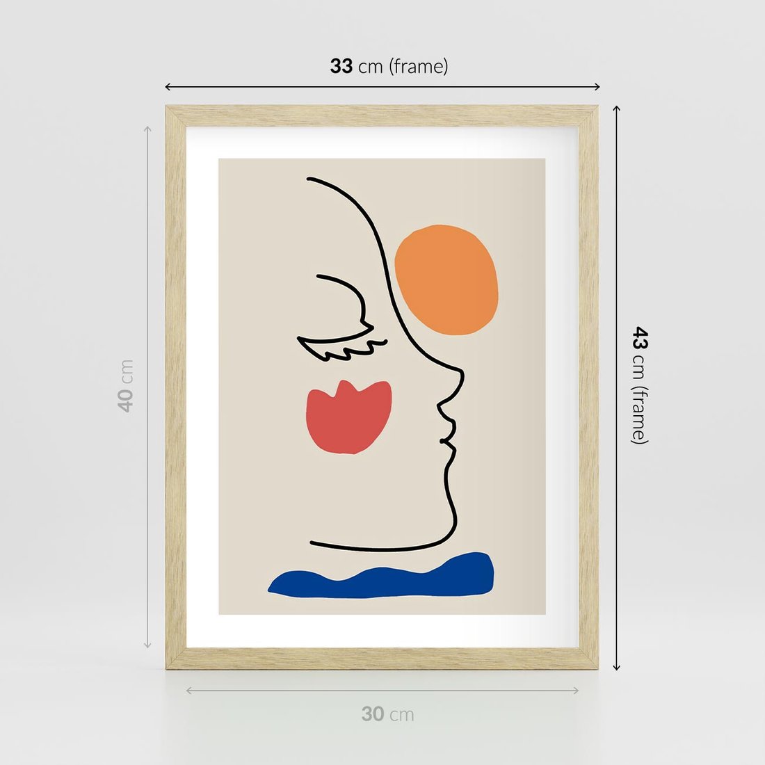 Plakat w ramie 30x40 - Taniec Przenikających Plam - abstrakcyjny obraz, przypomina twarz - rama drewno