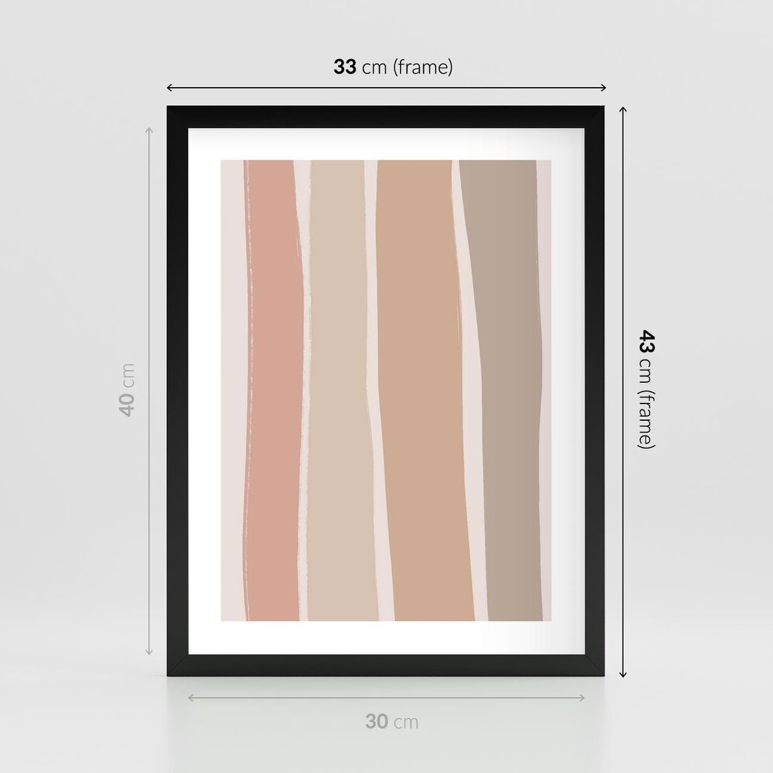 Plakat w ramie 30x40 - Tęczowa Zgaszona Aura - abstakcyjne tęczowe pasy, delikatne odcienie beżu - rama czarna
