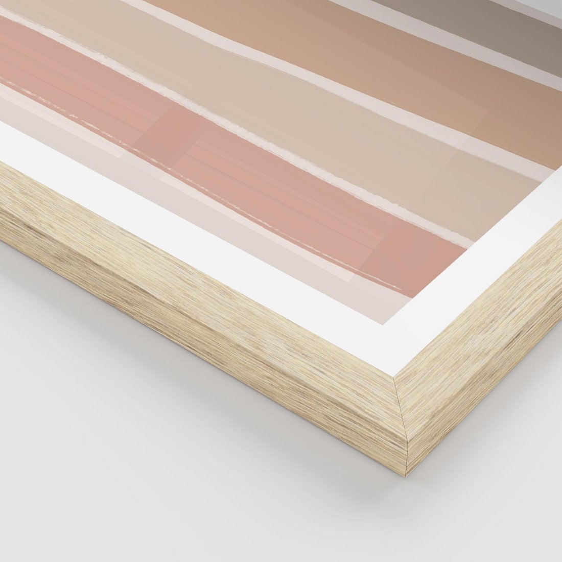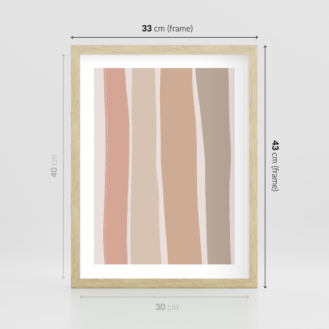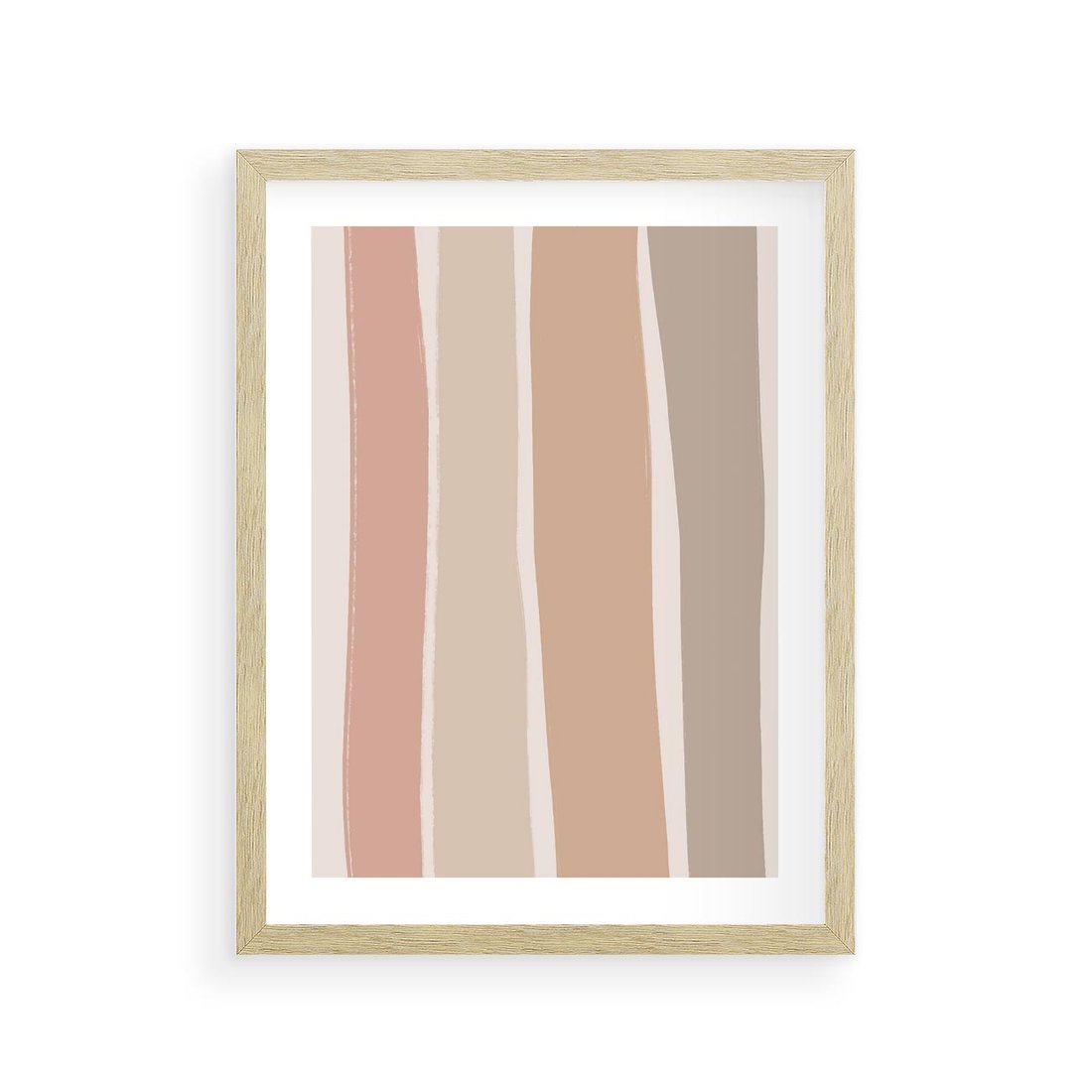 Plakat w ramie 30x40 - Tęczowa Zgaszona Aura - abstakcyjne tęczowe pasy, delikatne odcienie beżu - rama drewno