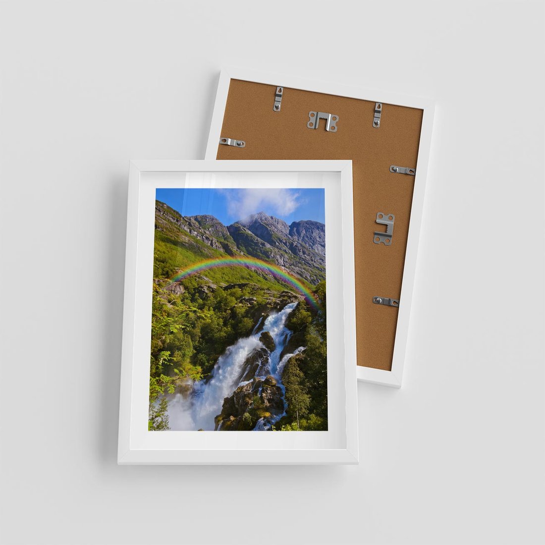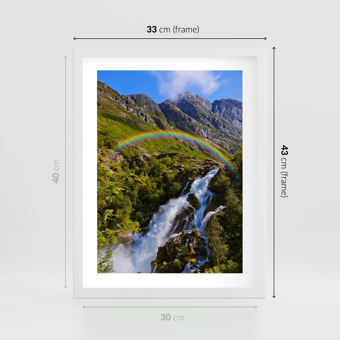 Plakat w ramie 30x40 - Tęczowe góry - harmonia kolorów - tęcza, góry - rama biała