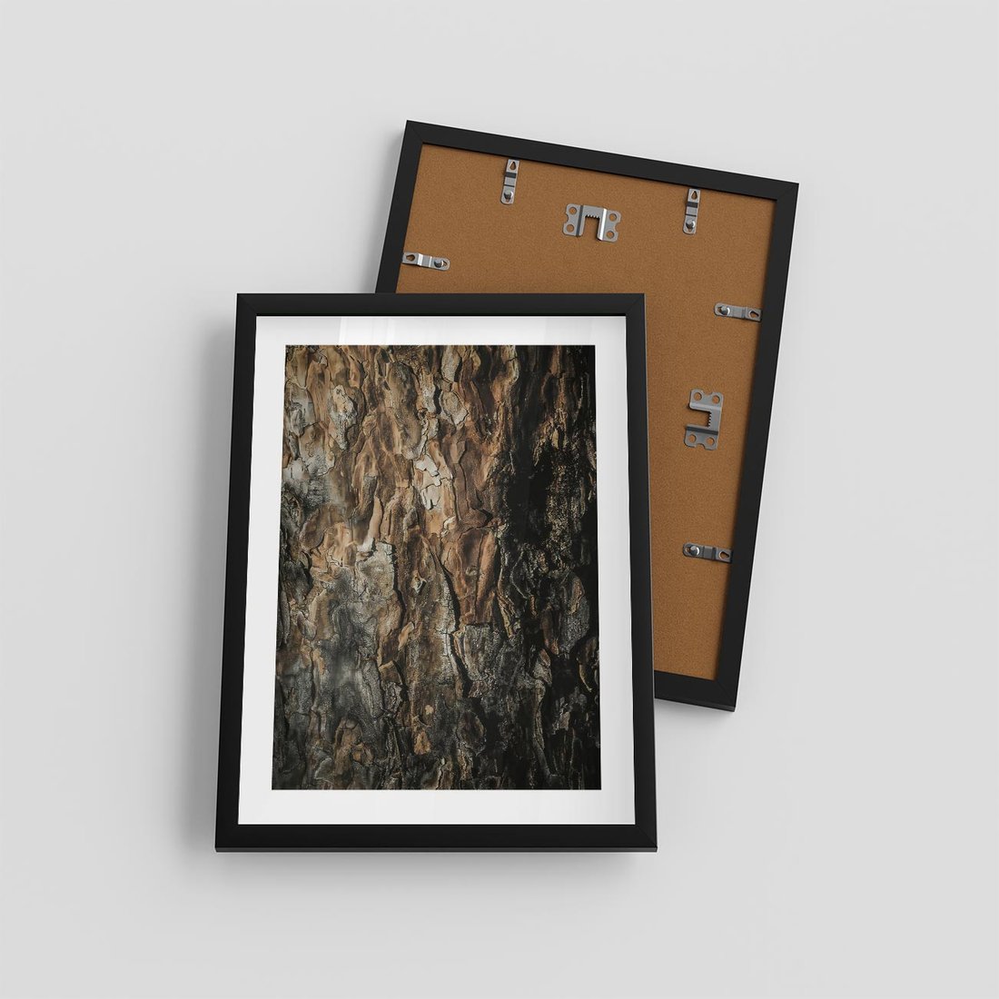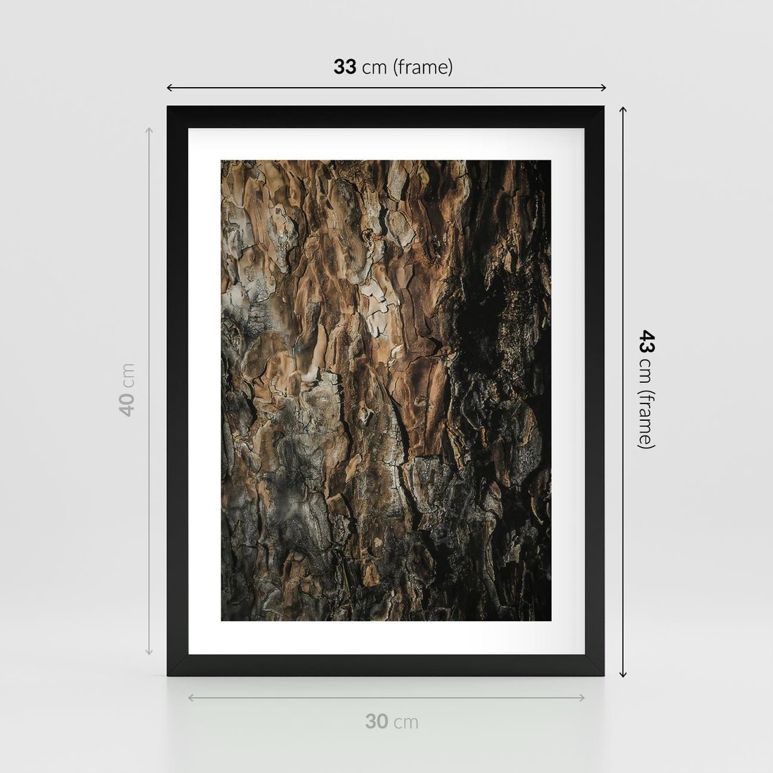 Plakat w ramie 30x40 - Tekstura Drewna: Zbliżenie - zbliżenie na pień drzewa, tekstura - rama czarna