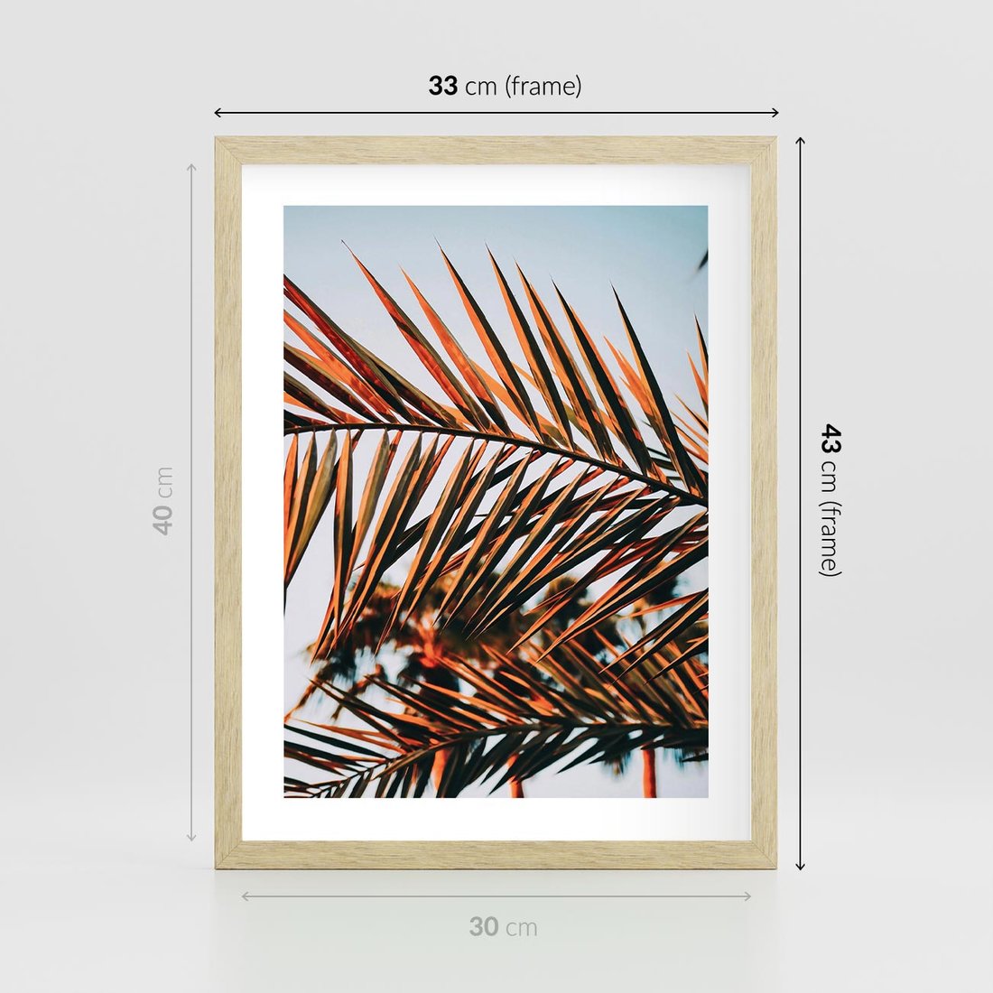 Plakat w ramie 30x40 - Tropikalna Harmonia - palma, liście palmy - rama drewno
