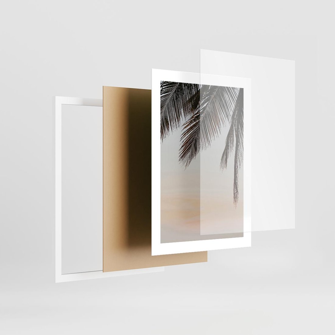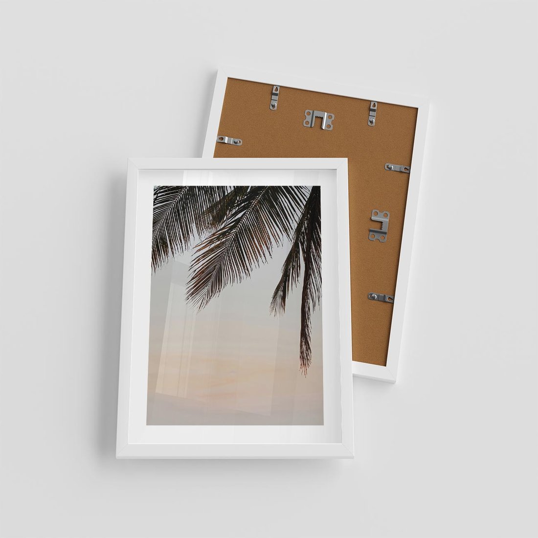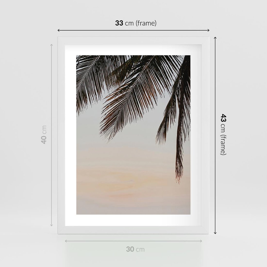 Plakat w ramie 30x40 - Tropikalna Harmonia - palmy na tle nieba - rama biała