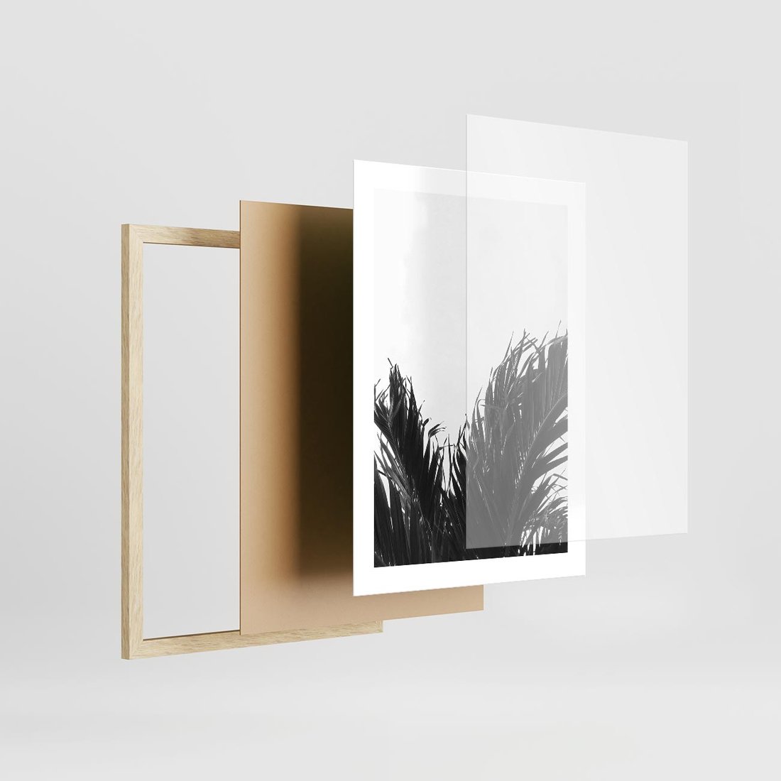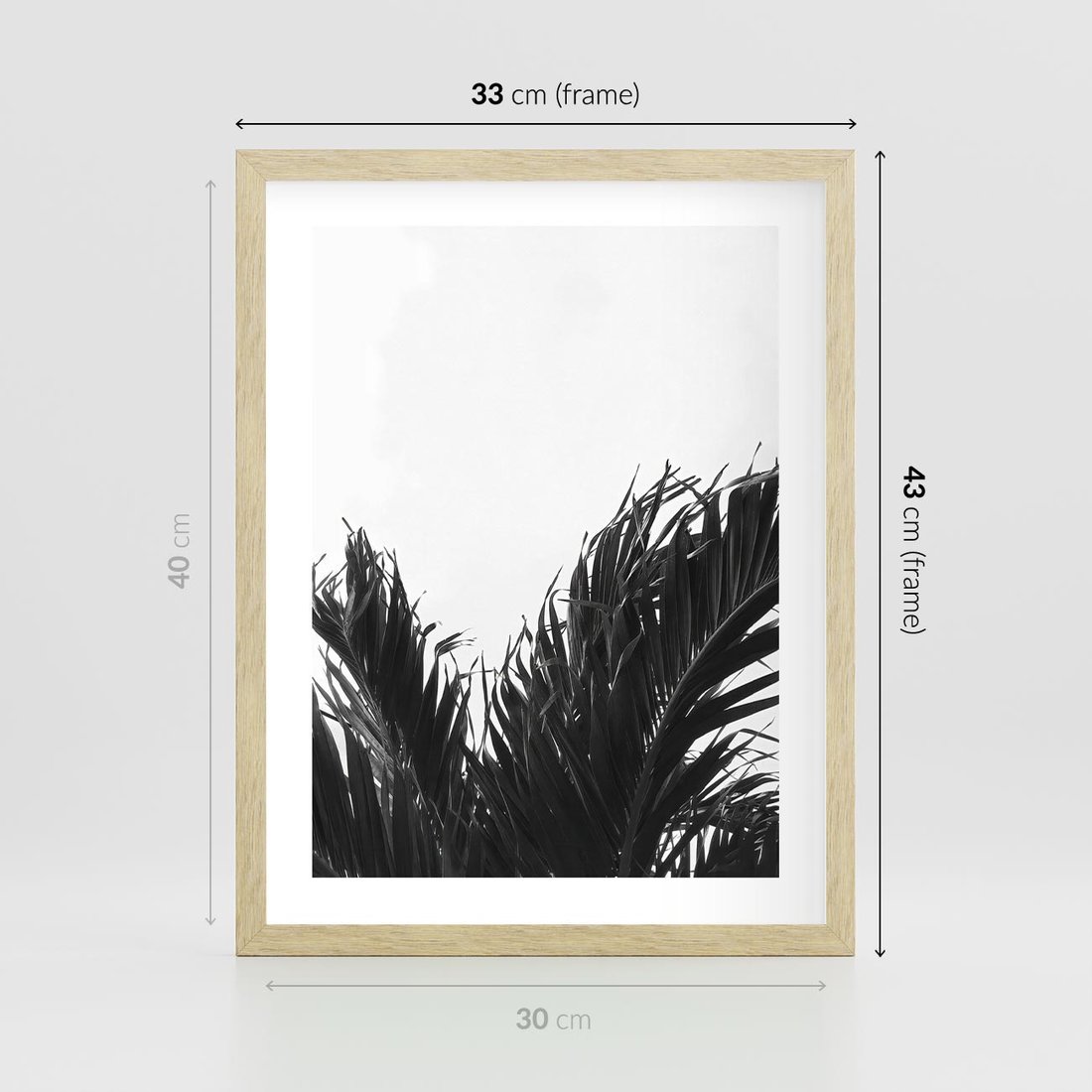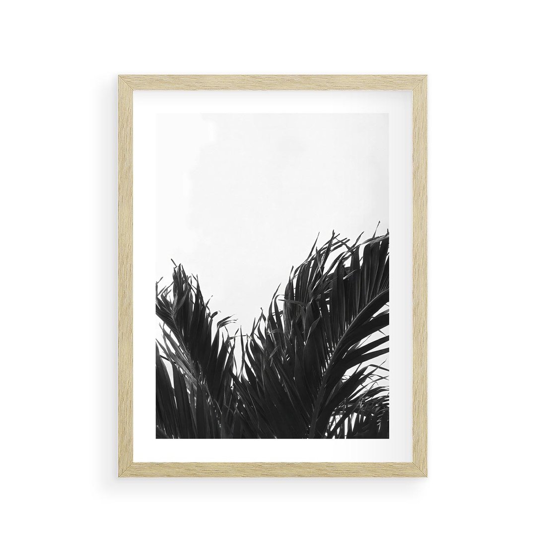 Plakat w ramie 30x40 - Tropikalna Uroda w Czerni i Bieli - fotografia czarno biała, liście palmy - rama drewno