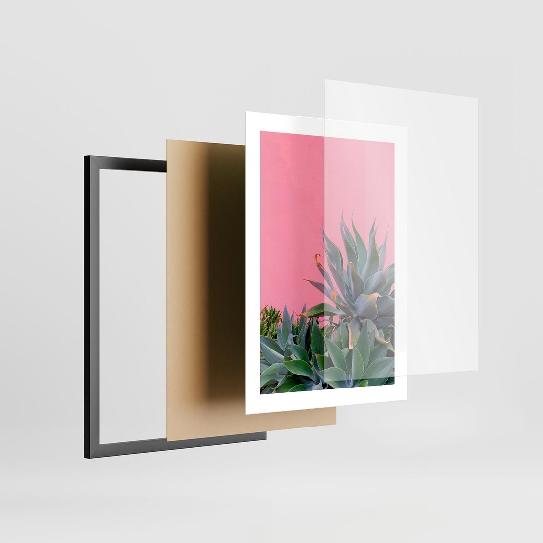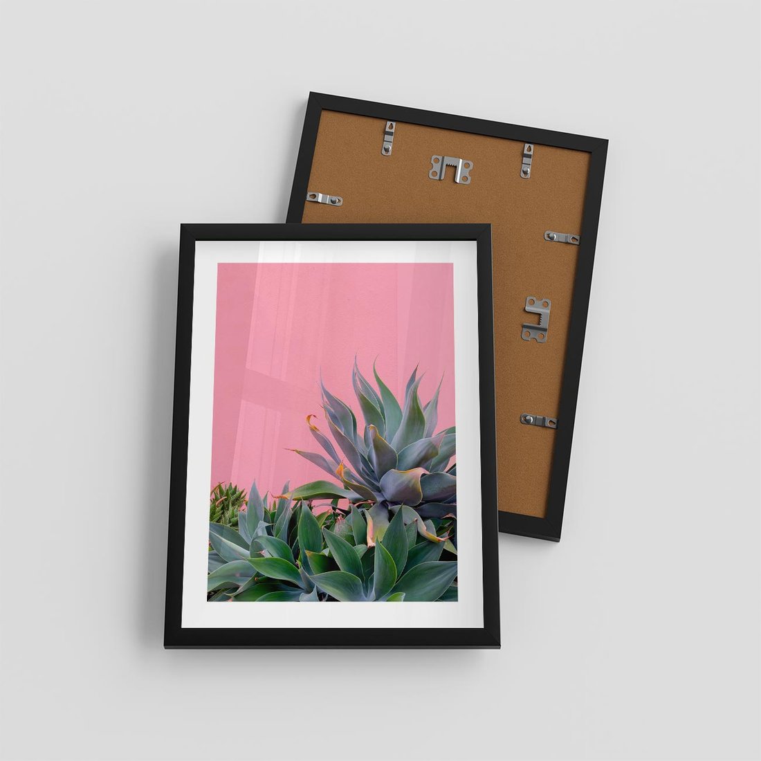 - Plakat w ramie 30x40 - Tropikalne Liście na Różowej Ścianie