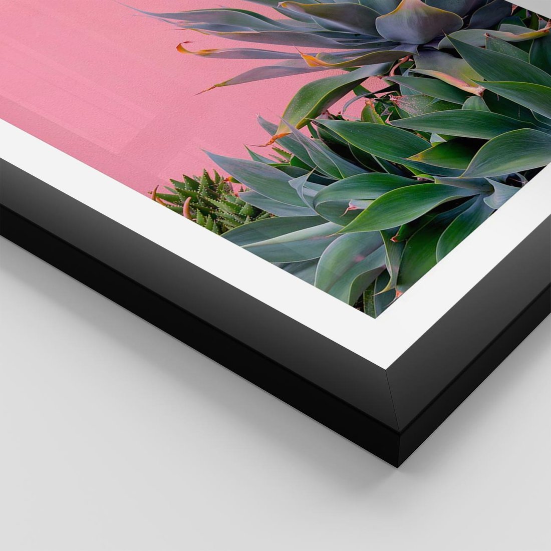 Plakat w ramie 30x40 - Tropikalne Liście na Różowej Ścianie - różowa ściana, tropikalne liście na jej tle - rama czarna
