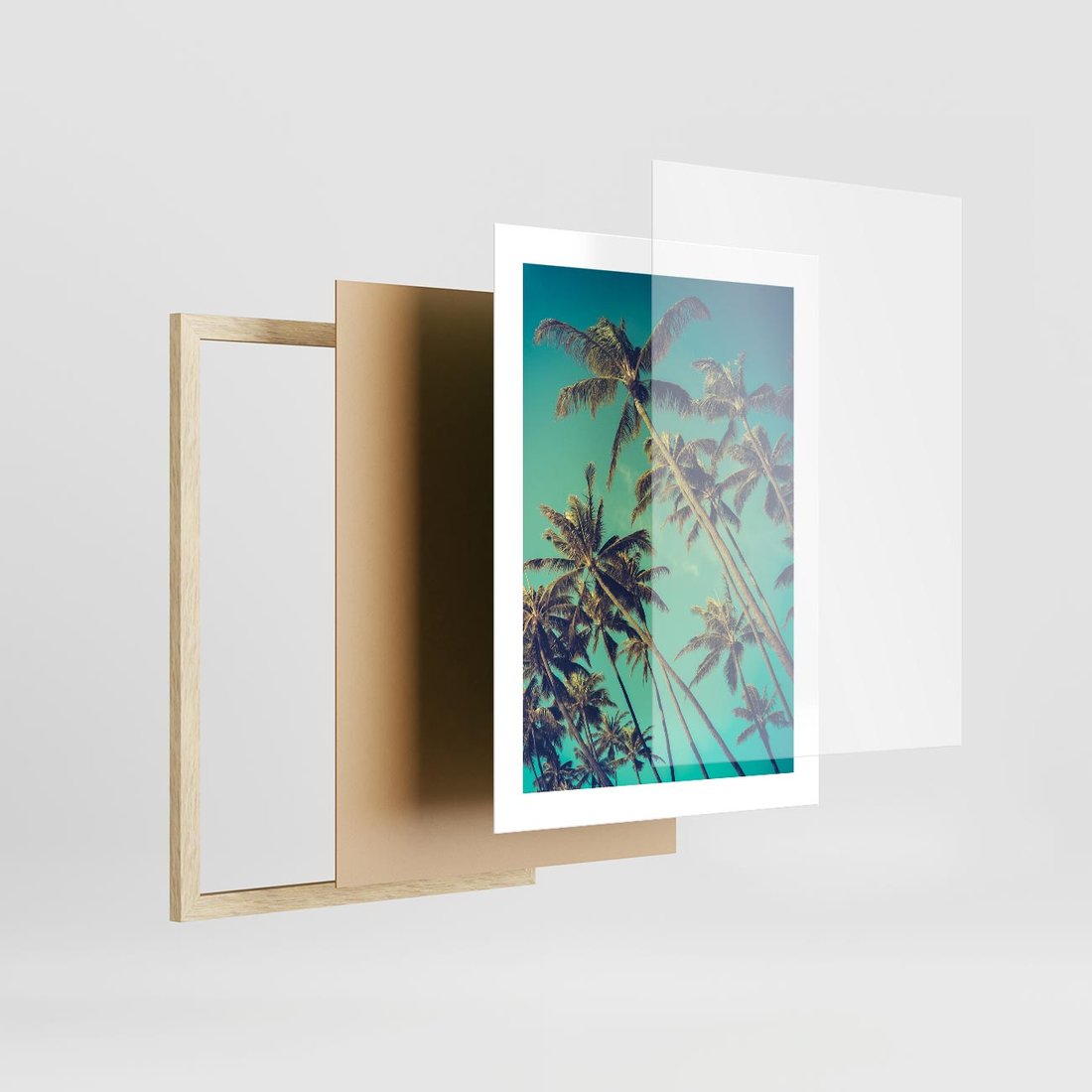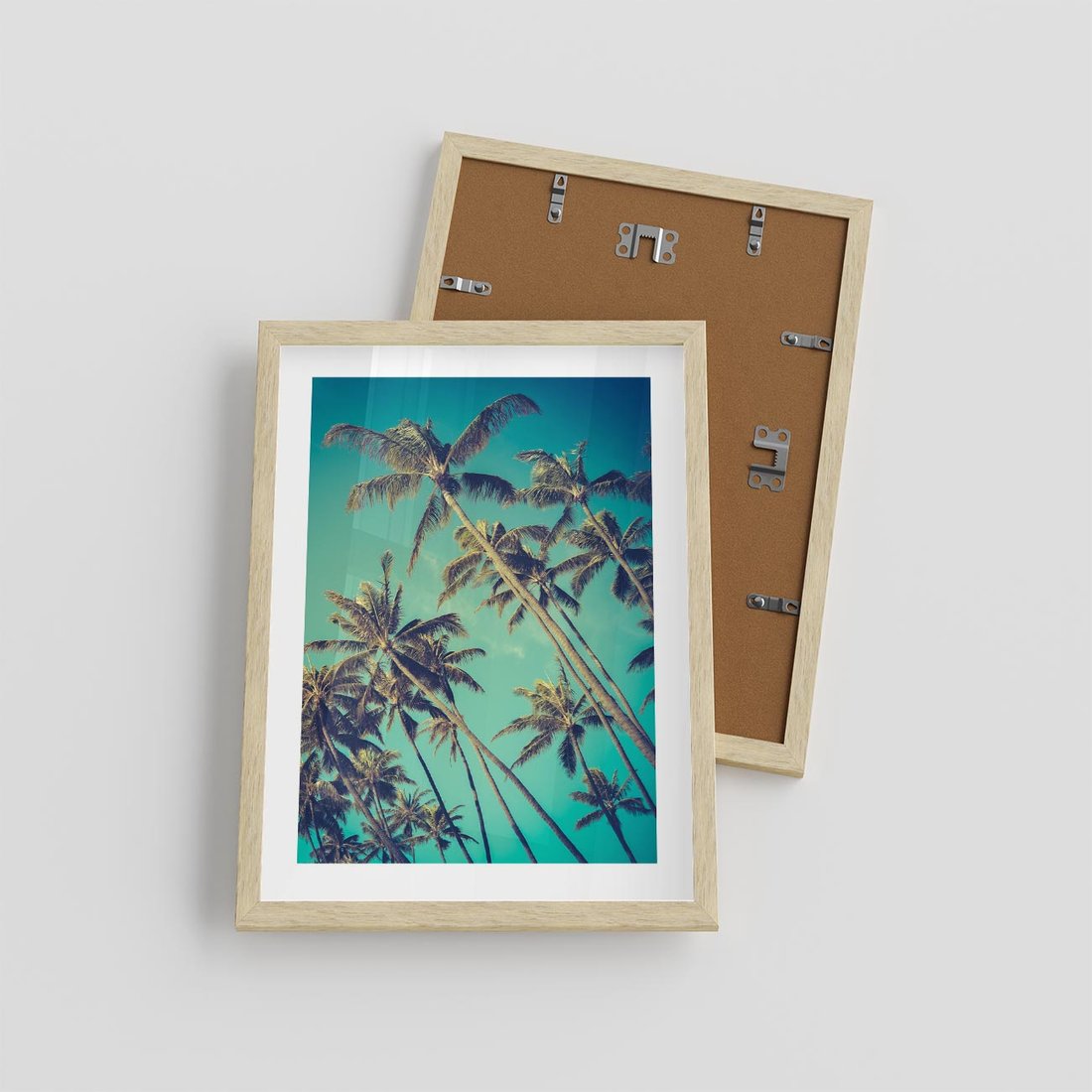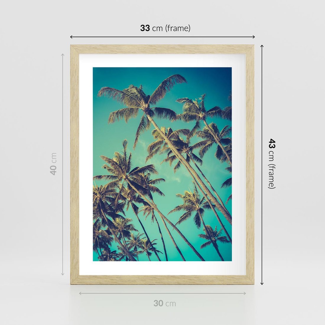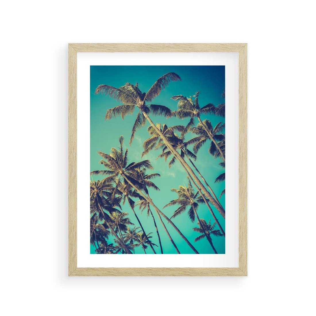 Plakat w ramie 30x40 - Tropikalne palmy w krainie słonecznych wakacji - palmy, tropiki - rama drewno