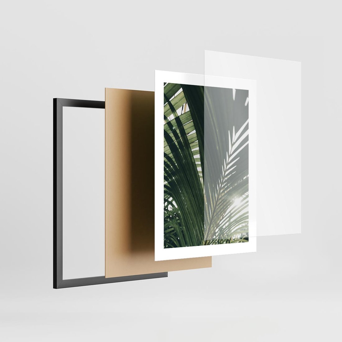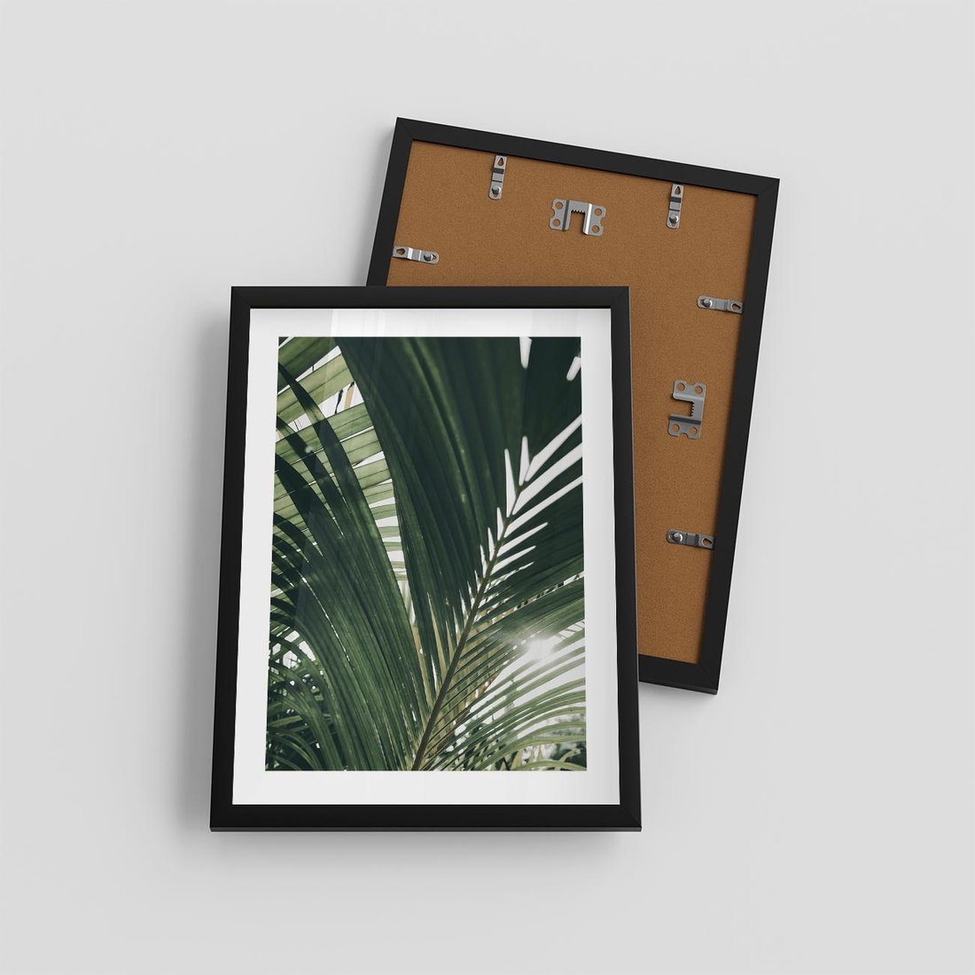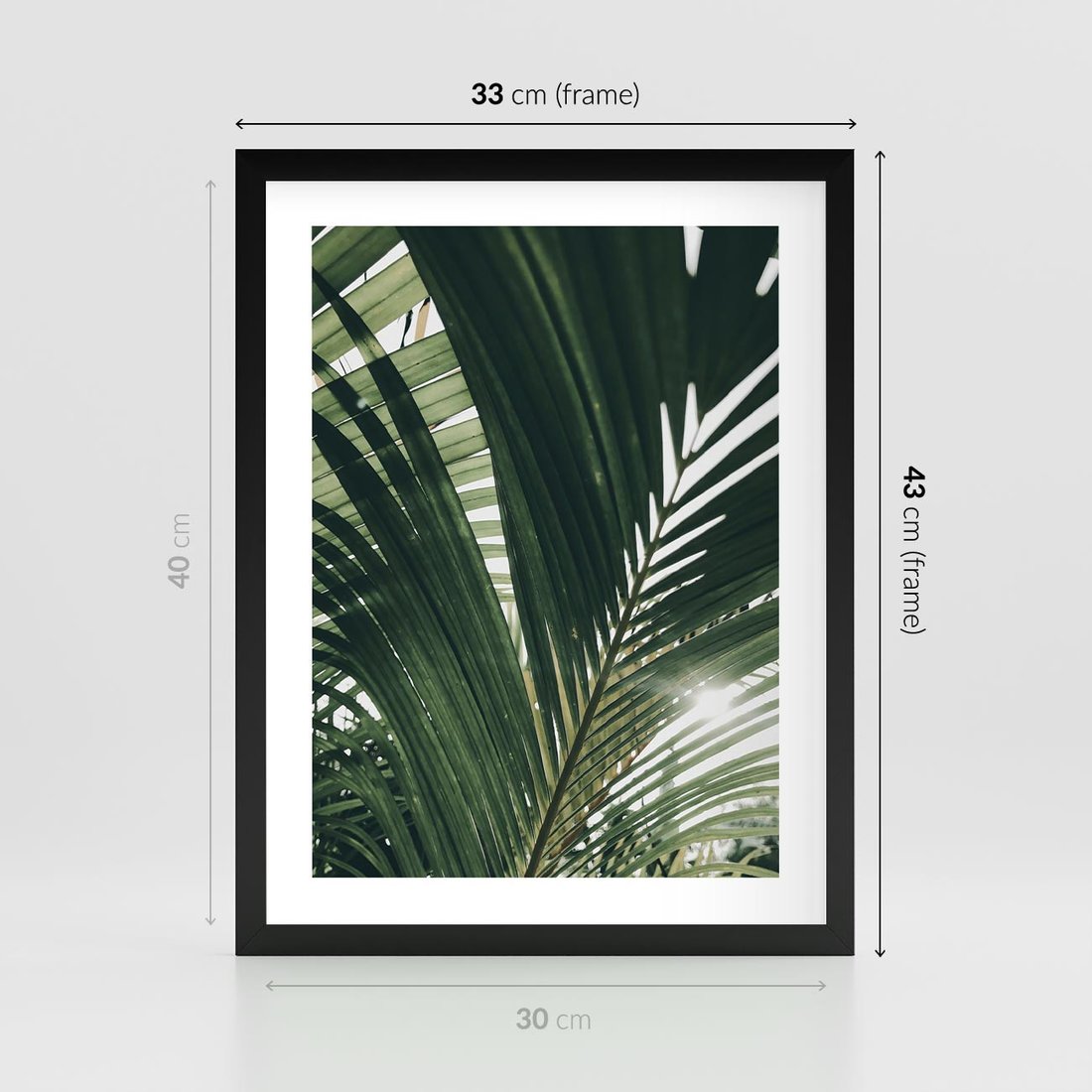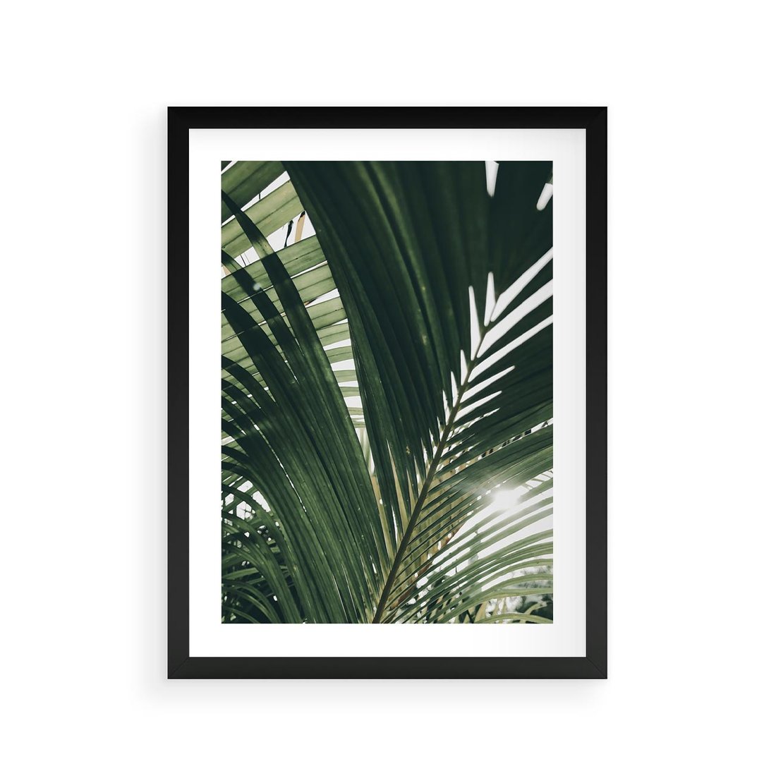 Plakat w ramie 30x40 - Tropikalne Uroki: Palmy i Zielone Liście - palmy, zielone liście - rama czarna