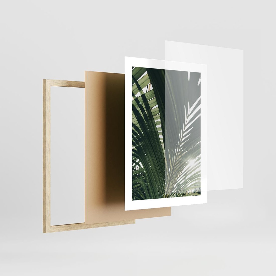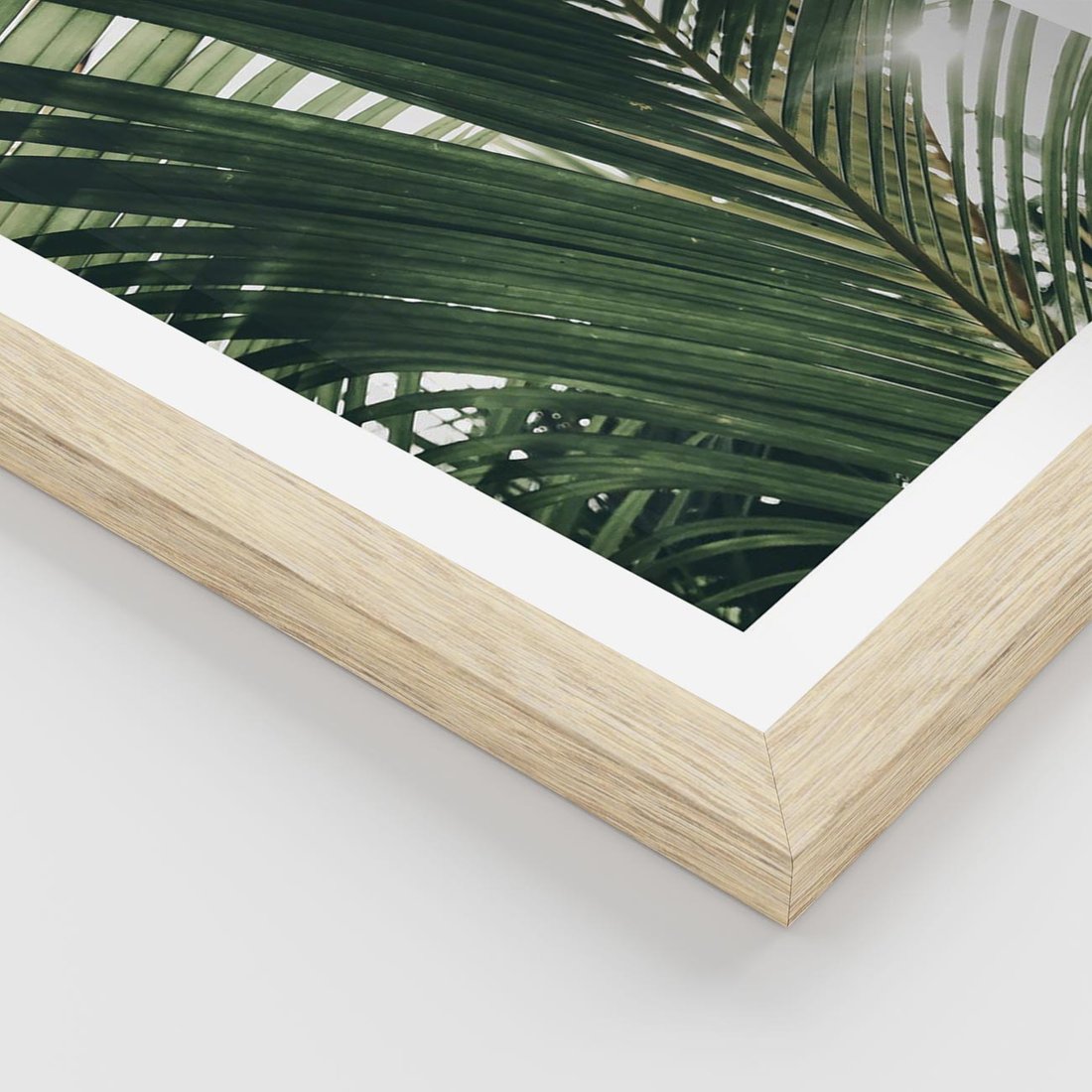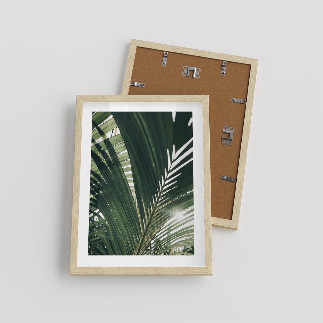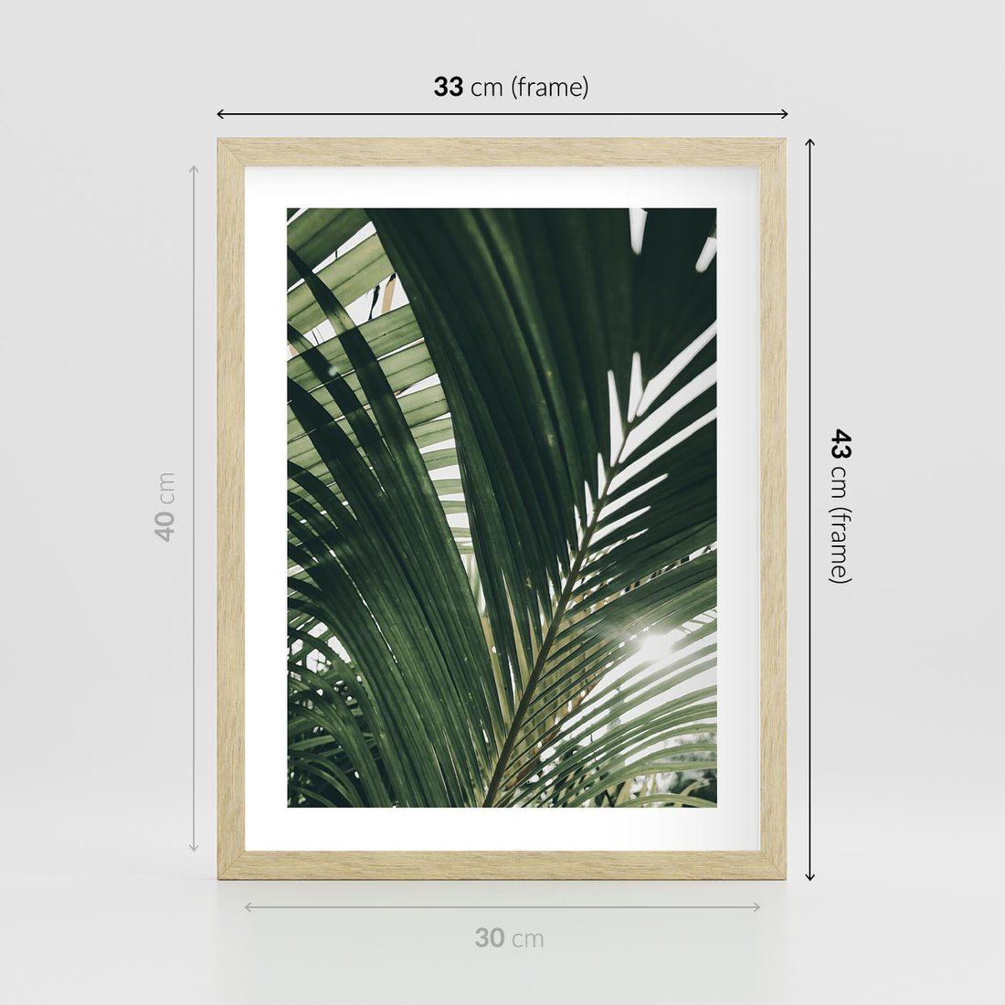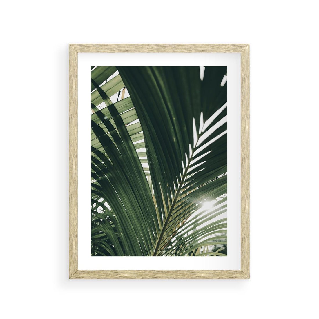 Plakat w ramie 30x40 - Tropikalne Uroki: Palmy i Zielone Liście - palmy, zielone liście - rama drewno