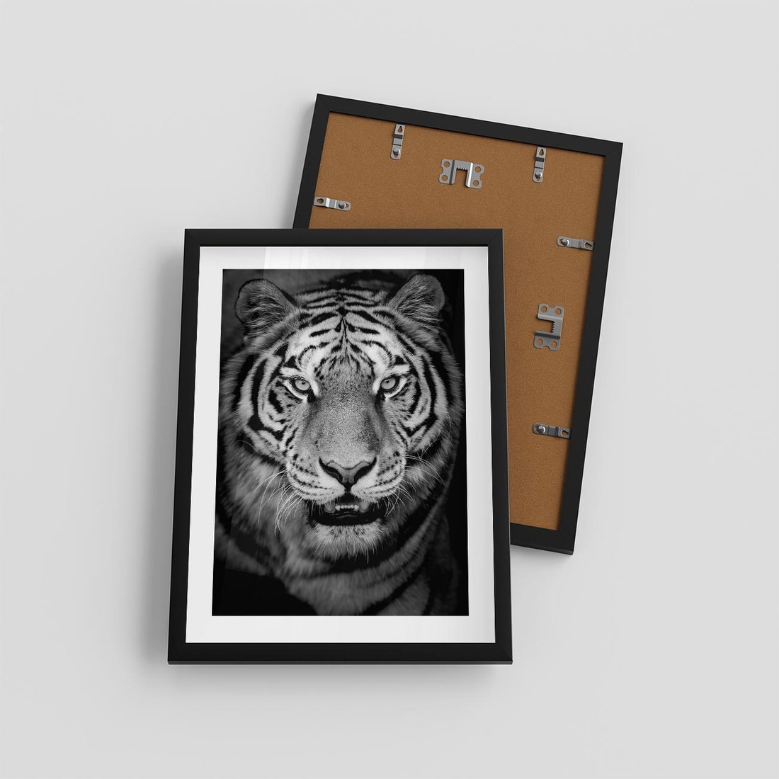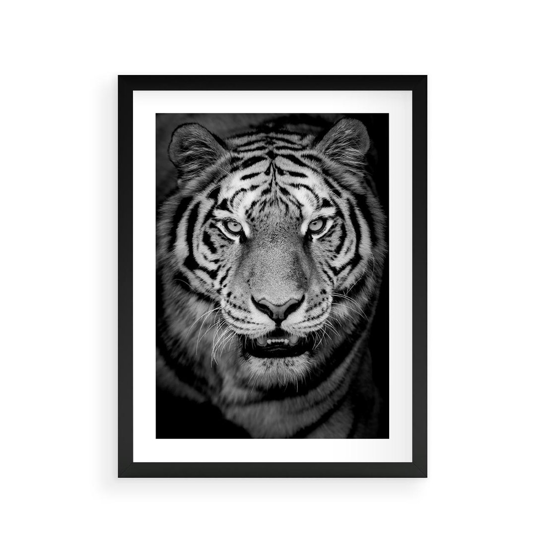 Plakat w ramie 30x40 - Tygrys Czarno-Biały: Siła i Delikatność - tygrys, czarno - rama czarna