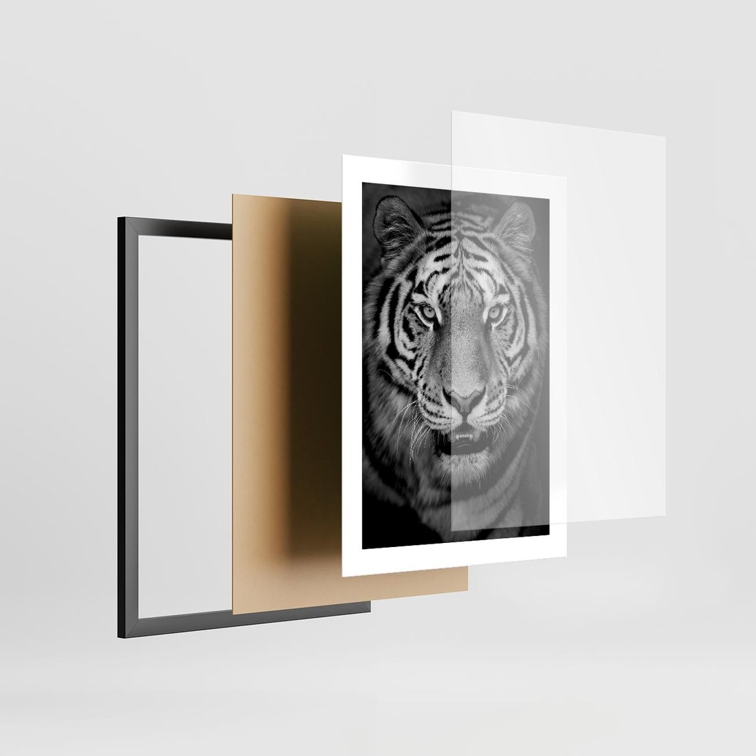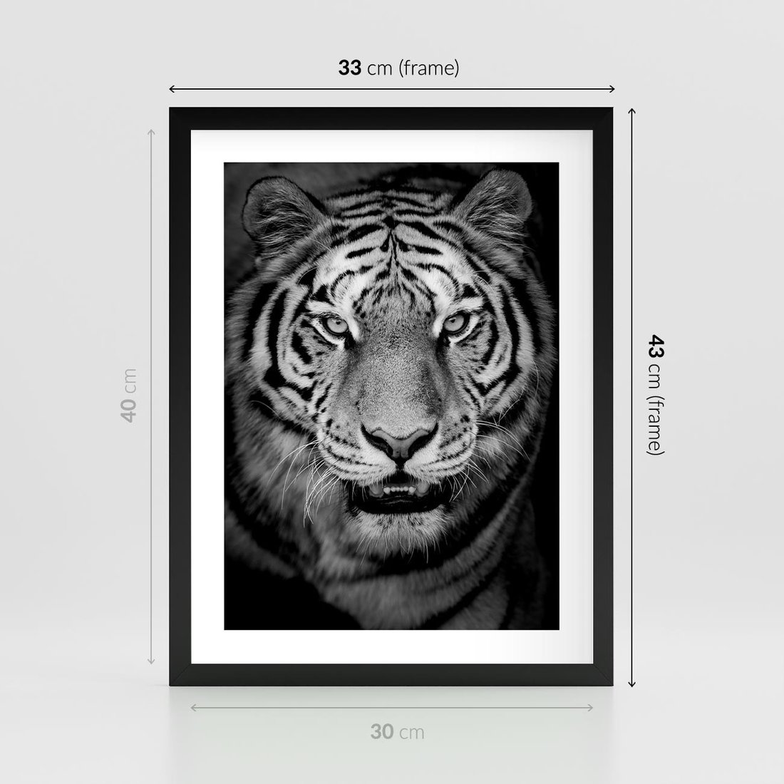 - Plakat w ramie 30x40 - Tygrys Czarno-Biały: Siła i Delikatność