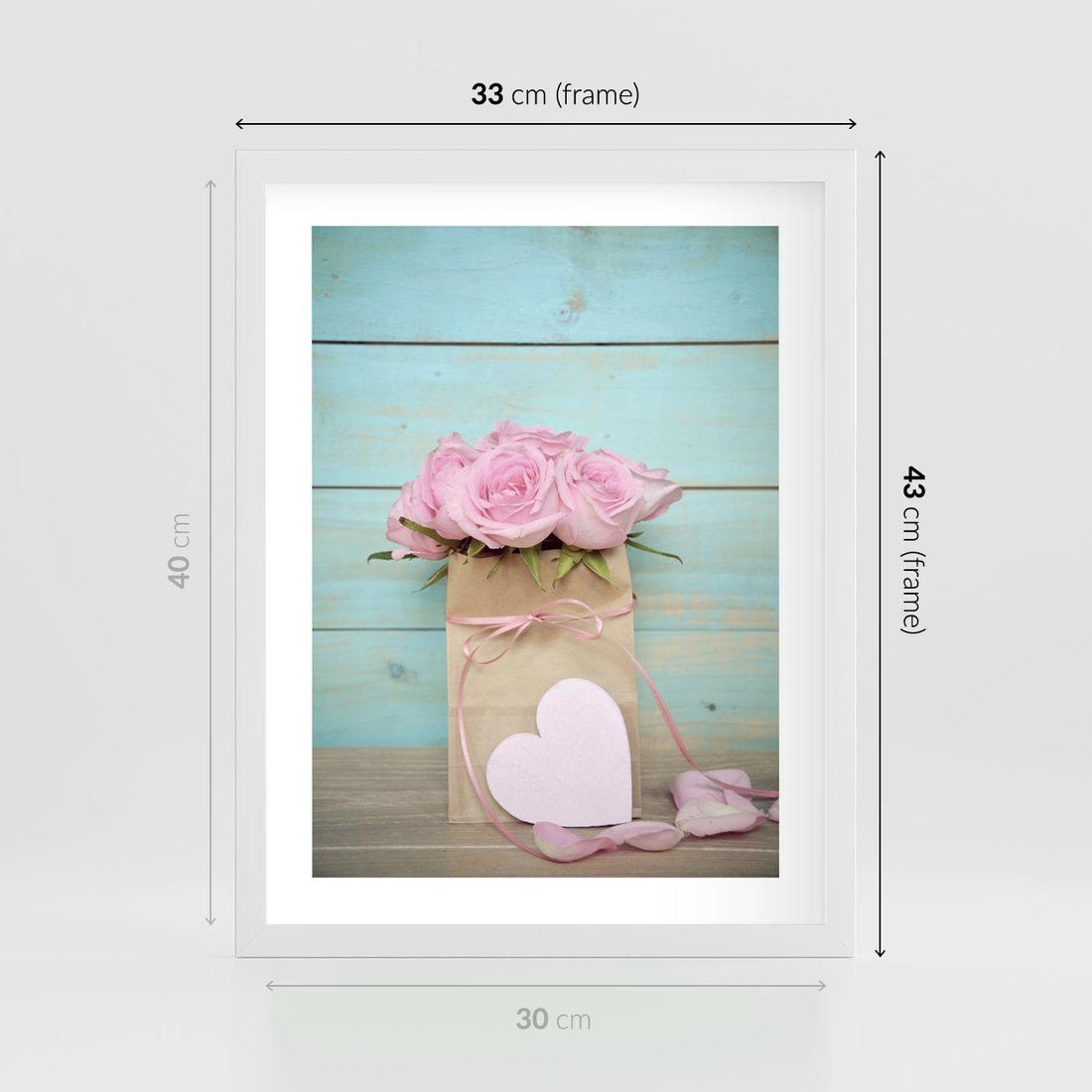 Plakat w ramie 30x40 - Uczucie W Pełnym Rozkwicie - kwiaty, romantyczne - rama biała