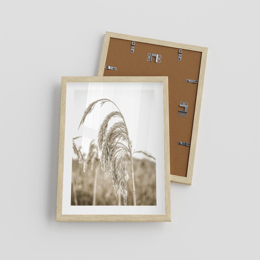 Plakat w ramie 30x40 - Ujęcie Suchych Traw - suche trawy, zbliżenie - rama drewno