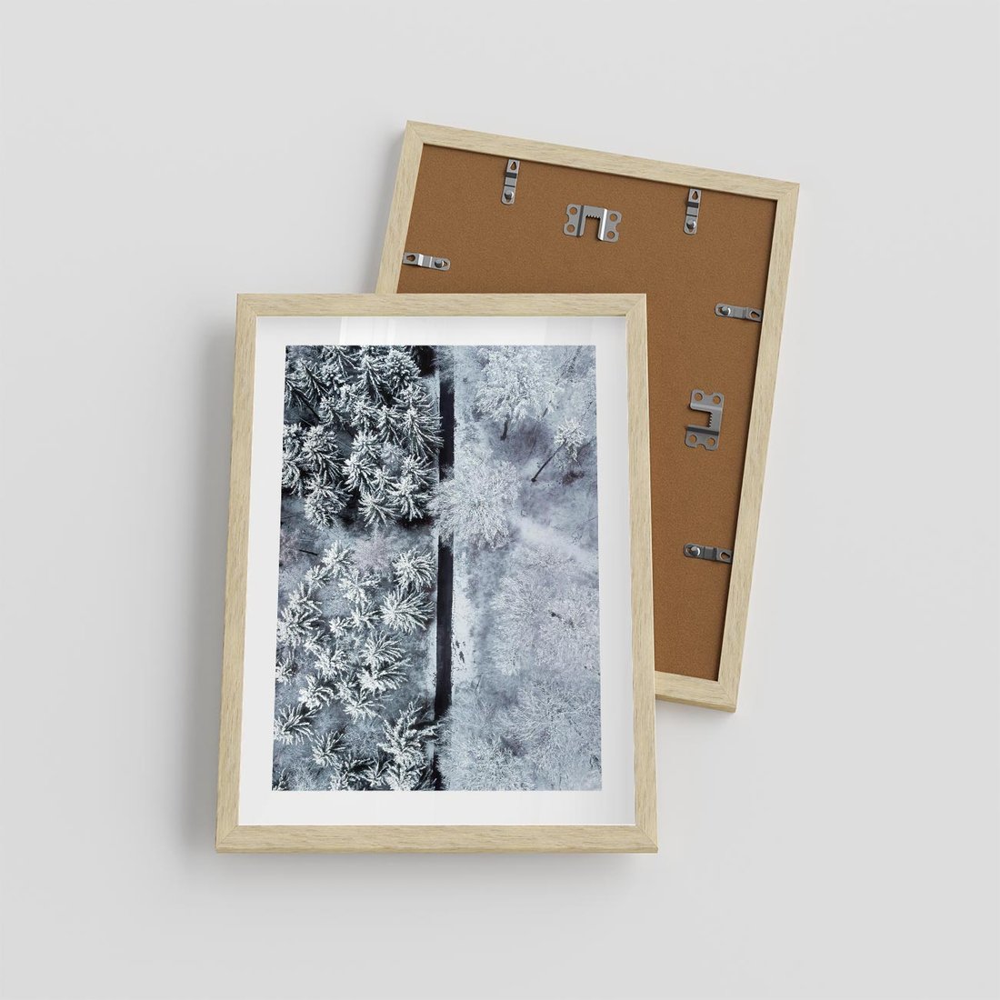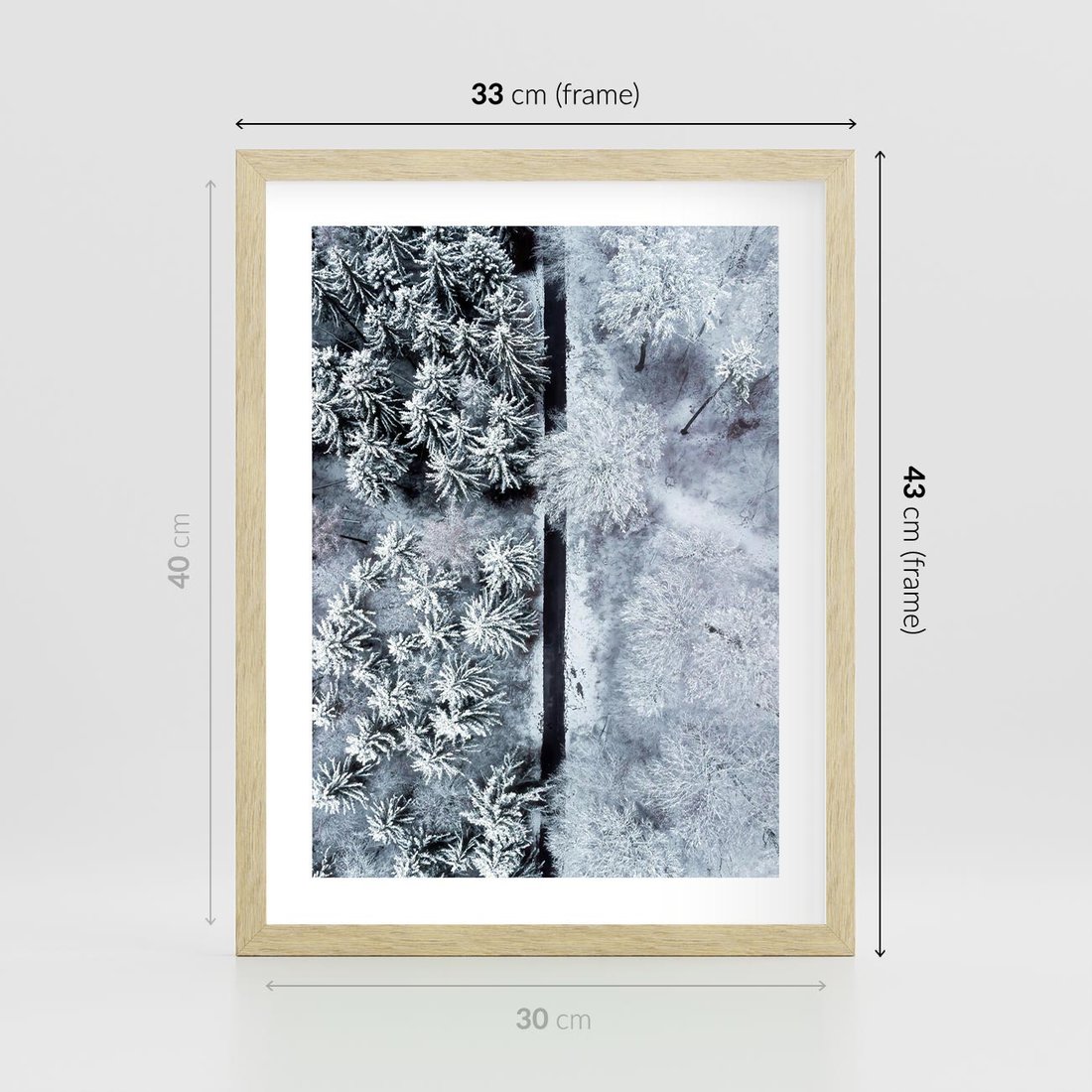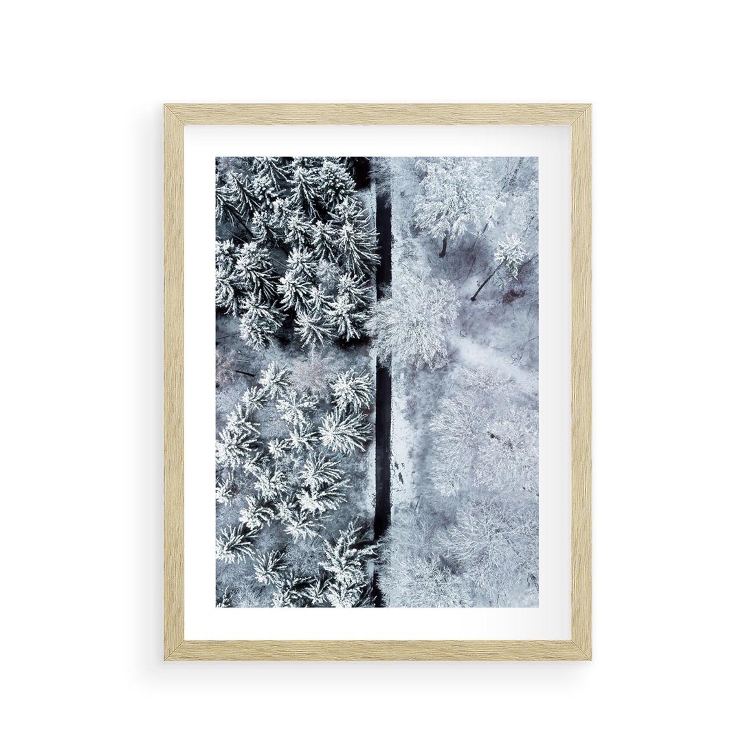 Plakat w ramie 30x40 - Ujęcie Zimowej Szosy - zima, śnieg - rama drewno