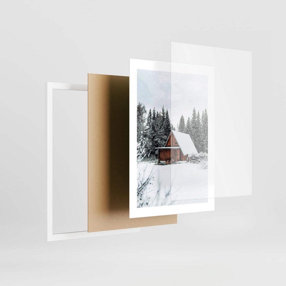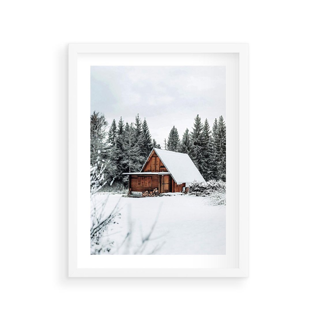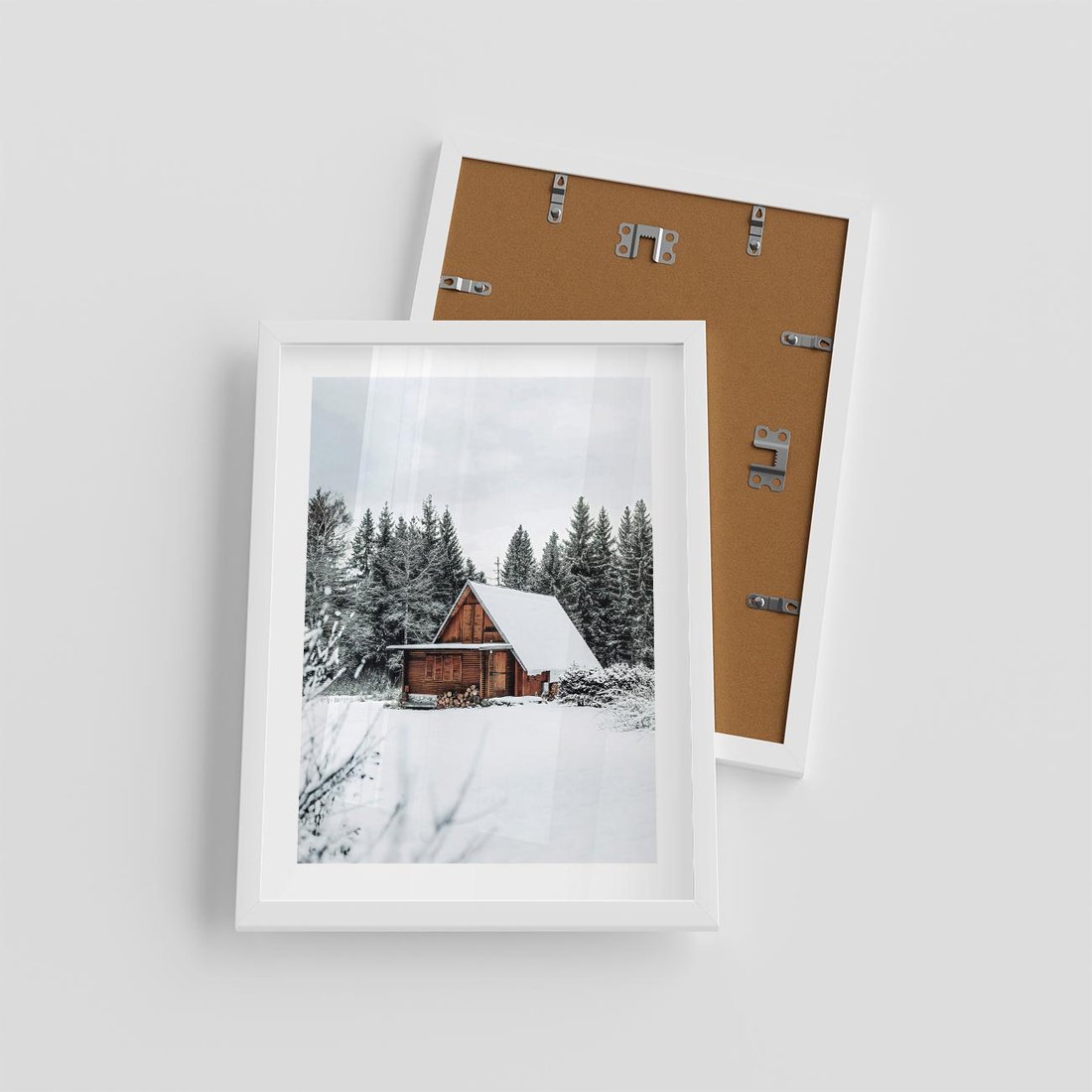 Plakat w ramie 30x40 - Ujęcie zimy w Górach - domek w górach w zimie, śnieg - rama biała
