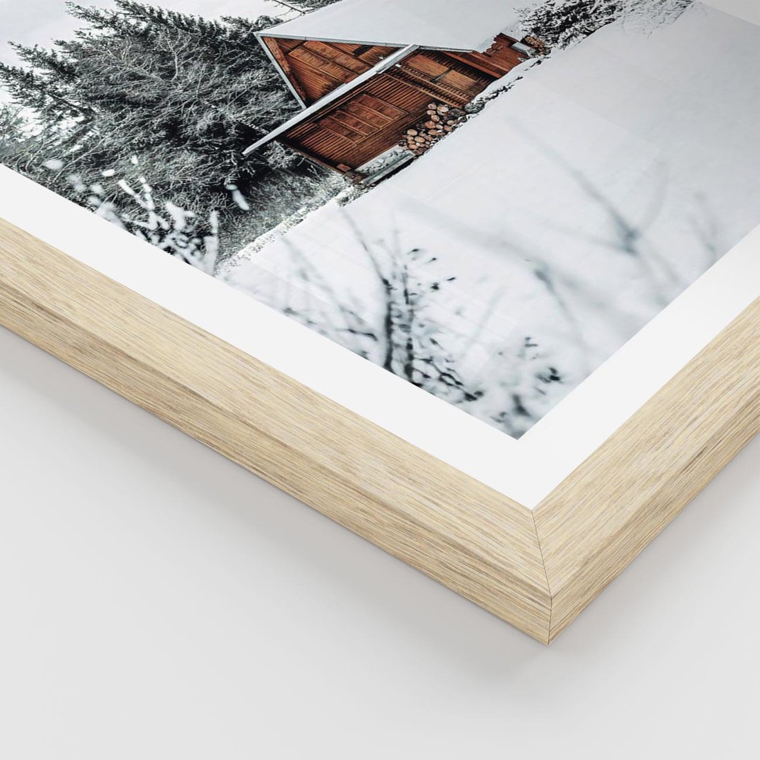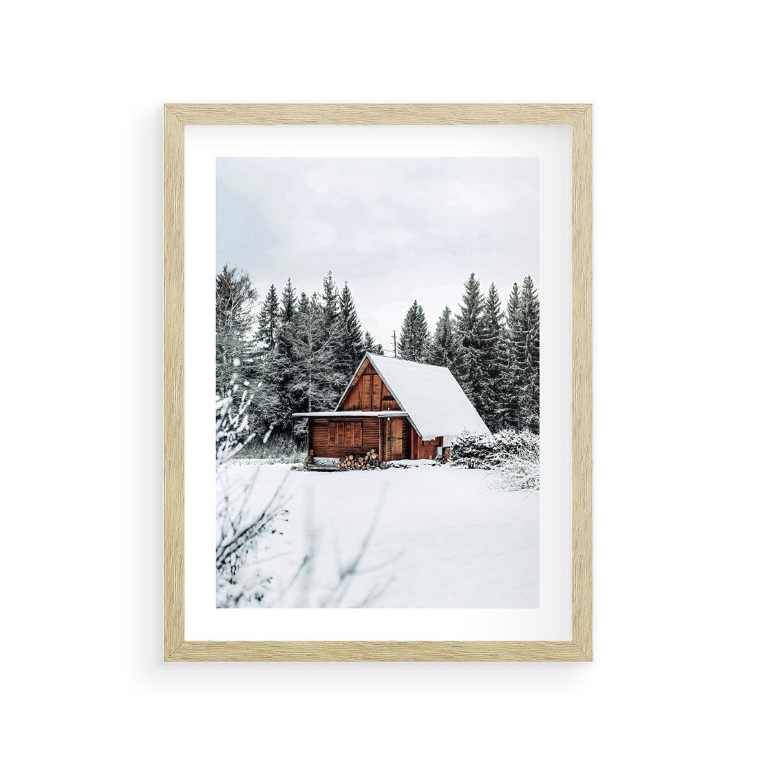 Plakat w ramie 30x40 - Ujęcie zimy w Górach - domek w górach w zimie, śnieg - rama drewno